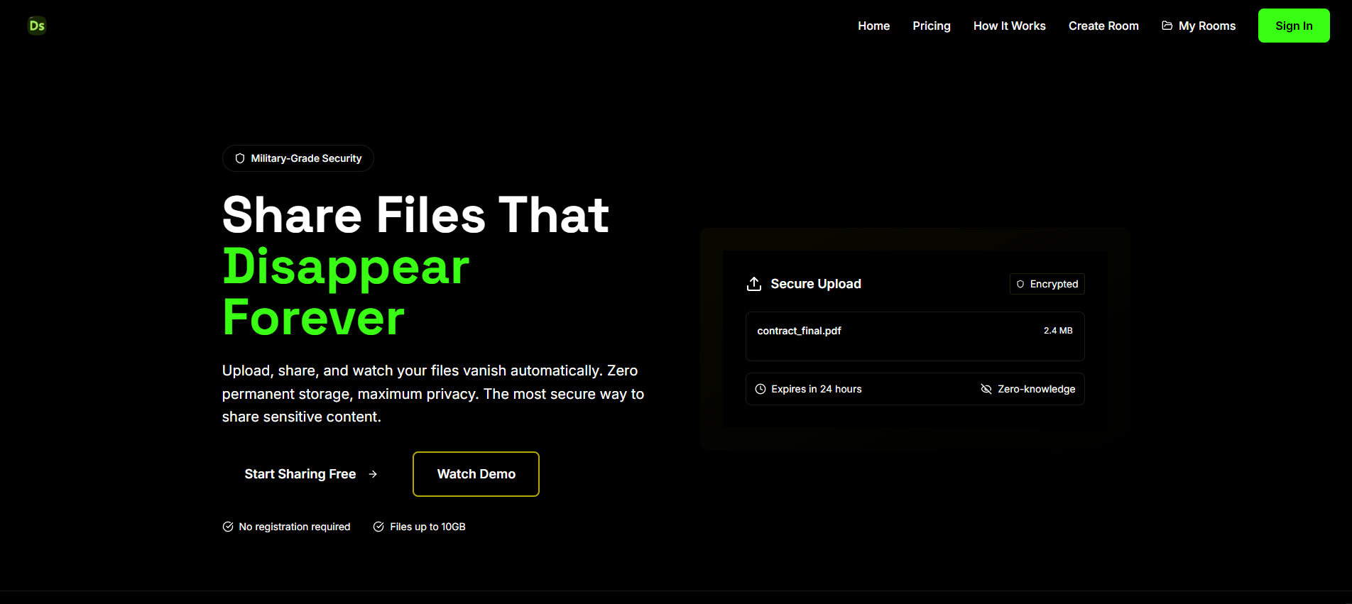 Create a room. Share a file. Watch it vanish. 🌀