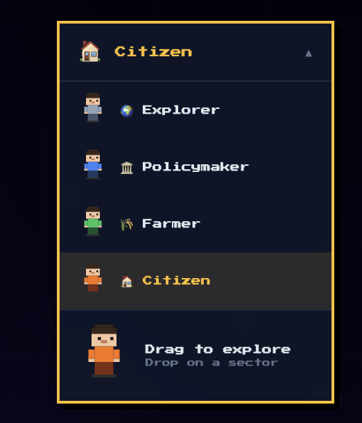 The Game: Pick a persona (Explorer, Policymaker, Farmer, or Citizen) and drop into side-scrolling levels themed around specific sectors. Each persona unlocks different sectors: a Farmer can enter Freshwater Use, Food, and Land Use Change; a Policymaker unlocks Climate Change, Income and Work, and Peace and Justice. This isn't arbitrary. Perspective matters. The sectors you can influence depend on who you are in the system.