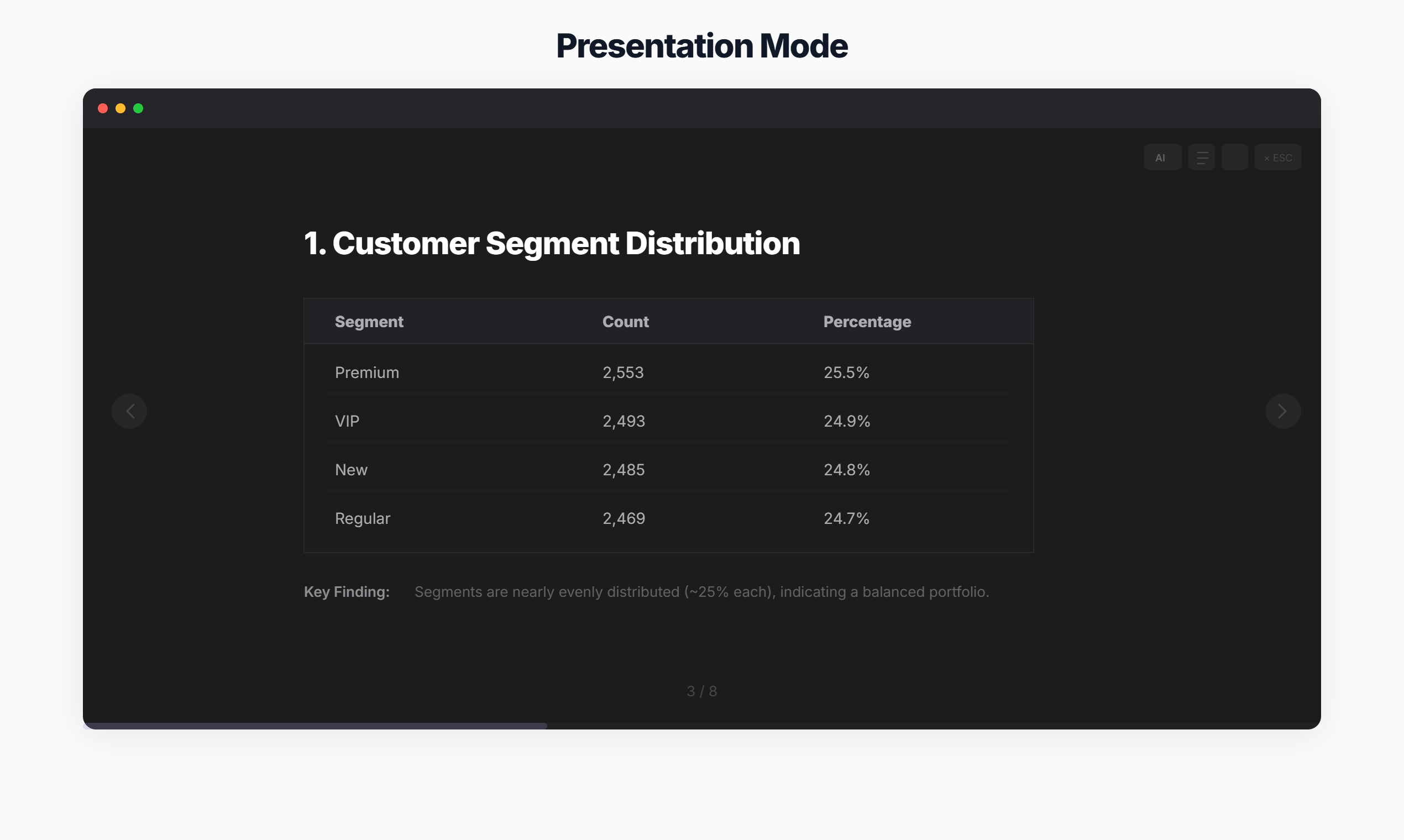 - Presentation Mode: Turn any document into a full-screen slideshow with one click