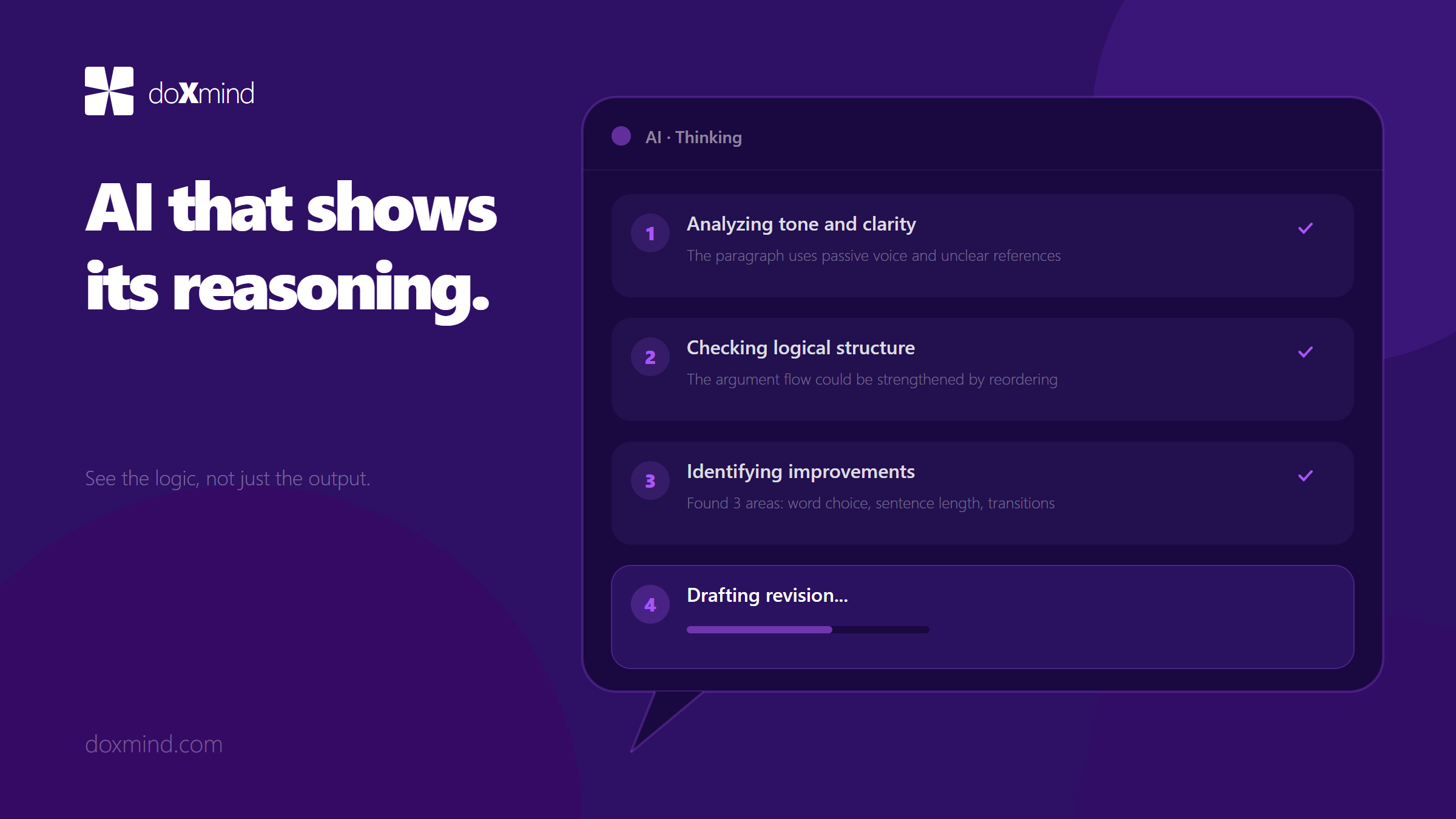 We dreamed of an intelligent writing companion that could truly understand our content and help us think — not just correct typos. That's when we decided to build doXmind: an AI-native editor designed from the ground up.