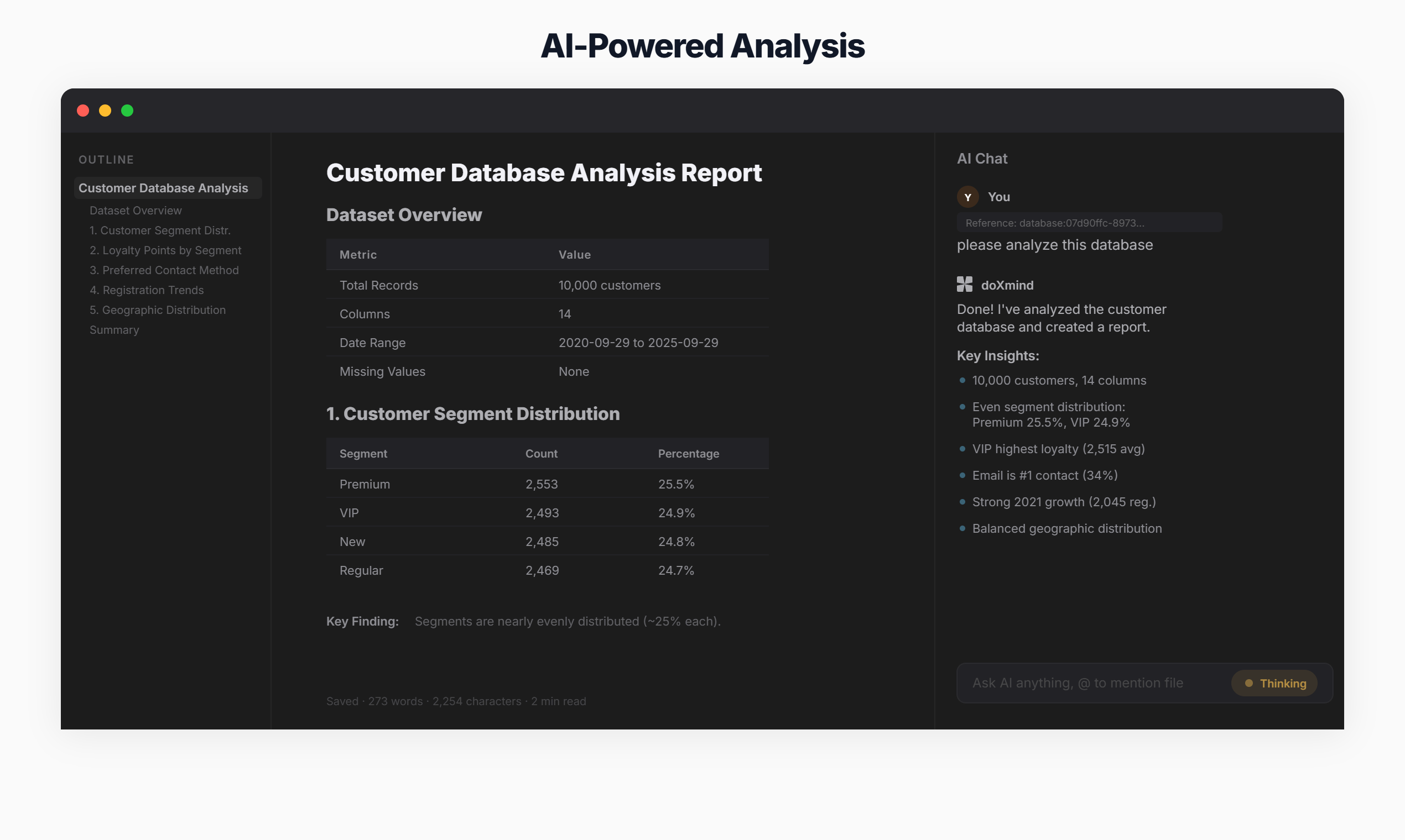 doXmind is an AI-native writing editor with intelligence built into every layer: