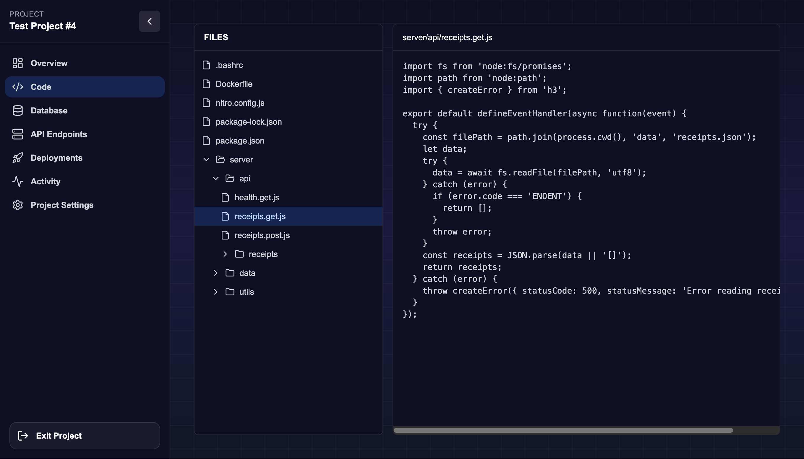 - Nitro.js backend- Handles MCP protocol requests via JSON-RPC and manages user projects