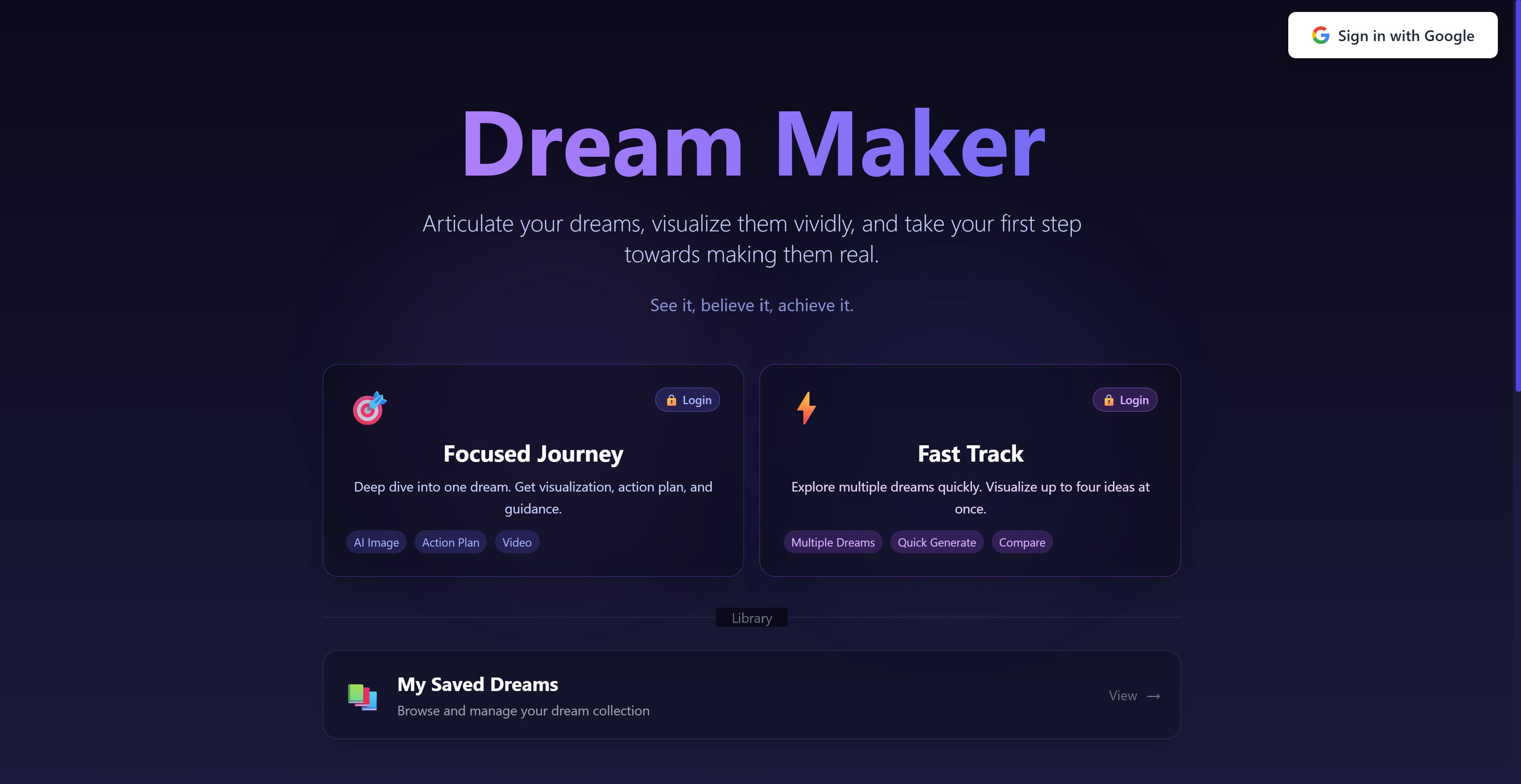 The inspiration for Dream Maker came from a simple observation: many people struggle to articulate their dreams clearly, and even fewer take concrete steps toward achieving them. I wanted to create something that bridges the gap between aspiration and action. I also like Cloud Run so this seemed like the perfect opportunity.