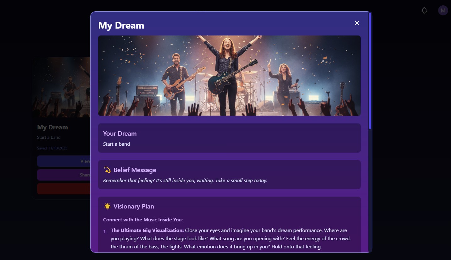When you combine powerful infrastructure (Cloud Run) with AI (Gemini, Nano Banana, Veo), you can create experiences that weren't possible even a year ago. Dreams don't have to stay in our heads—with the right tools, we can make them visible, actionable, and shareable. The app can be further develop to include a wall of shared dreams by users, user stories and notifications via messaging apps or email.