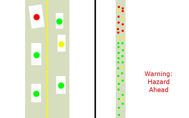Cars can communicate a driving score to other nearby vehicles using DSRC to alert them of distracted or unsafe driving. Sensors in the vehicle could record driving speed, movement of the steering wheel, lateral motion of the car, frequency and degree of braking, how closely the vehicle follows other vehicles, or other data to determine an overall score for how safe the driver is driving. This score would then be broadcast to nearby vehicles and/or receivers along the road.Drivers of nearby cars would then be alerted when a car near them has a low score. Dynamic signs along the road could also indicate when a particular section of the road has recently been associated with driving indicative of a hazard. This data might also be transmitted to a regional traffic data system via cell phone towers to help drivers determine the best route to their destinations. Motivating participationDrivers may be hesitant to have their driving history recorded and scored. Drivers could be motivated to participate by wanting to know how those around them are scoring. Hazardous drivers also likely assume they drive more safely than they do. Auto insurance discounts could be available if driving behavior is found to be safer. Depending on driver sentiment, high participation rates might also be aided by enacting regulations that prohibit law enforcement vehicles from using the data for traffic stops or other uses. Market research might also reveal that driver participation would increase if there were assurances that all data was erased after 30 minutes or some other interval.If the system is integrated with road receivers or a regional traffic information system, participation could be considered a philanthropic act and entail the resulting motivations.Improving driving behaviorsKnowledge that this system is in place and that a continuous scoring of driving behavior is occurring, could decrease distracted driving and increase safe behaviors. Understanding that surrounding drivers may be alerted to their poor driving could do the same. Exceptionally high scores could also be alerted creating a reward incentive for better driving. The system could also alert the driver to their own unsafe behavior and suggest a rest stop if the data suggest the driver is sleepy or intoxicated. Integration of the system with GPS and mapping data could allow directions to a suitable place to park. Preventing the system from becoming a distractionSeveral options exist to prevent the information this system provides from becoming a distraction in itself, if testing suggests it could. Drivers could only interact with the system via short audio alerts. The system could itself track whether it is a distraction by measuring driving performance after information is presented. If a distraction is detected, the system could reduce the amount of information presented either by turning off any visual presentation of data or reducing audio information to a simple alert tone or small red light on the dash. The system could also alert the driver of their own poor performance. Eliminating unhelpful alarms The system could utilize a rolling average to determine what driving scores are below normal. If everyone is driving poorly, the software could reduce the driving score that triggers an alert for a particular vehicle with instead having some general unobtrusive indicator of unsafe driving. If multiple days of data are available, the system could adjust the scoring algorithm to reduce the weight of certain poor driving practices that are ubiquitous. In this case the system could offer a weekly or monthly reminder that these common behaviors are dangerous perhaps with use of humor.