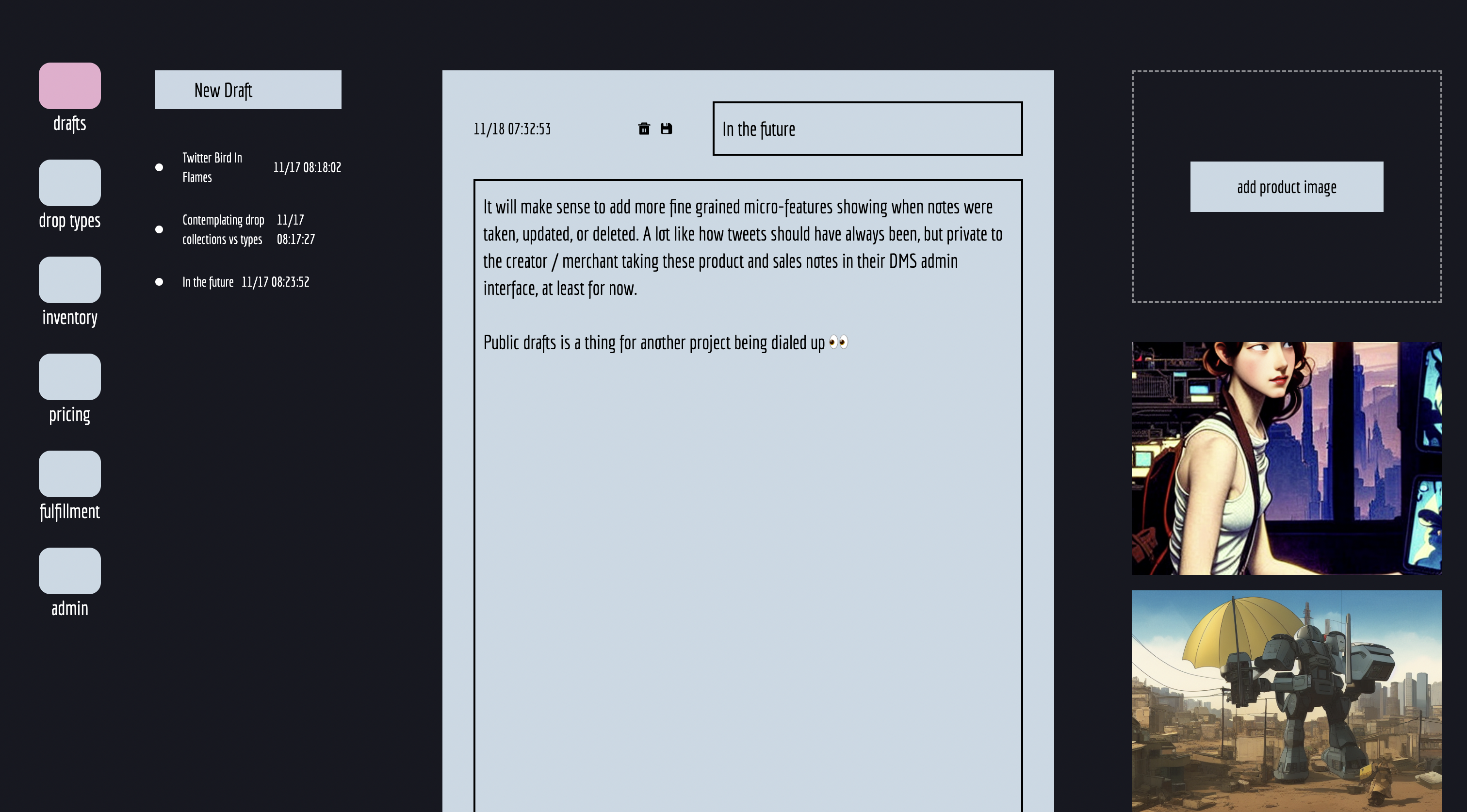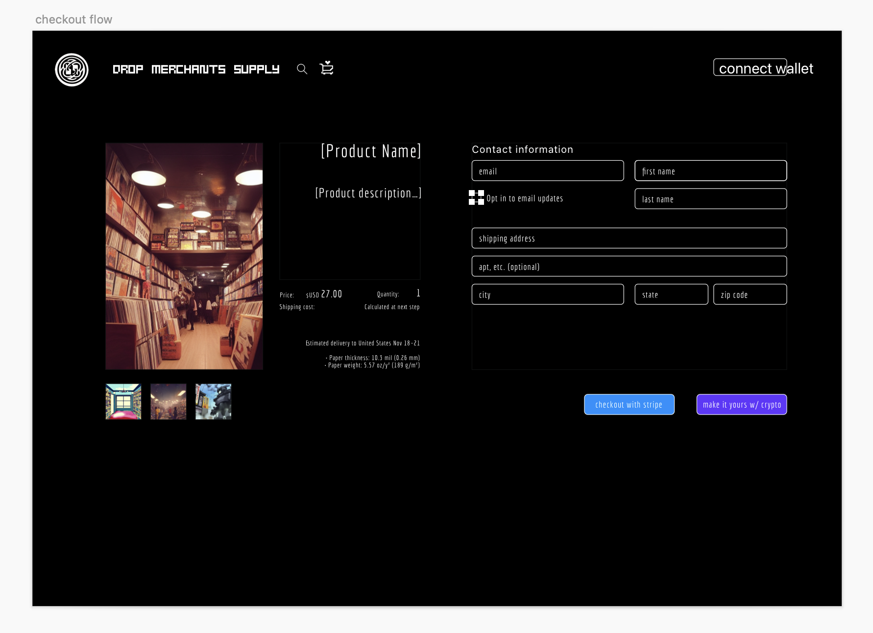 Most off the shelf e-commerce and CMS solutions aren’t open source, headless, written well in a typescript stack, or break frequently with web3 npm packackes (like wagmi, for example). A truly production ready, web3 native, lightweight e-commerce system optimized for drop management doesn’t exist yet. It would have been much less challenging if it did.
