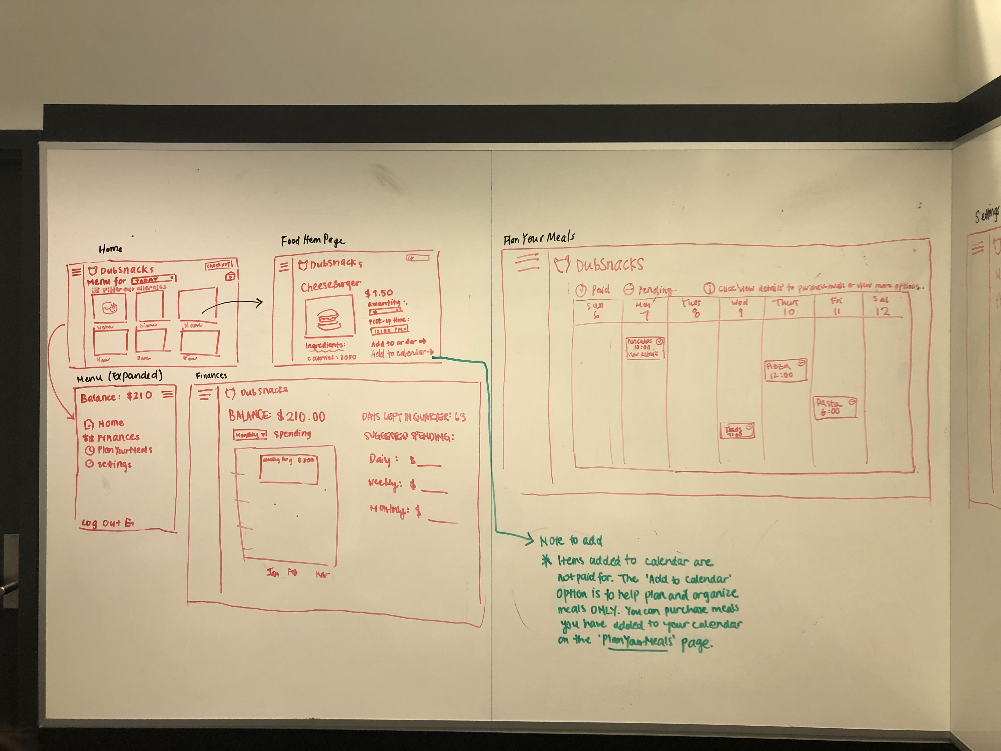 Our project helps food services across campus with time management because students will be able to pre-order meals and allocate times for pick up. Kitchen staff will be able to have all the meals ready by the time students show up at the cafeteria and eliminates the need for lines. DubSnacks also improves food safety and health awareness in college dining by being allergy friendly and allowing the input of food preferences. It also helps students manage finances by having graphs of the students’ past spending and using that data to predict how the student may spend in the future and give suggestions on how students should alter their spending habits. Finally, DubSnacks is meant to limit food waste because dining halls will be able to know exactly how many meals they should be making so they will not make too many extra meals.