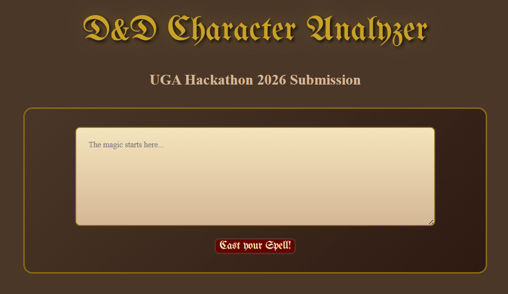 We built a Python backend that applies official D&D 5e rules to structured character data. An AI model interprets user descriptions and produces a character JSON, which our system validates, computes derived stats for, and maps directly into a fillable D&D character sheet using PDF form fields.