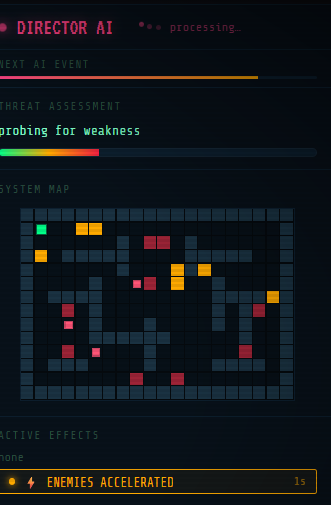 - Real-time HUD and AI log panel that shows the Director’s actions