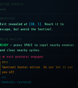 Another challenge was designing a clean interface that shows what the AI is doing, so the player understands why the environment is changing.