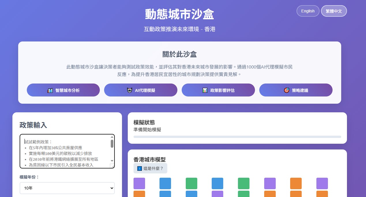 - AI Agent Citizens: 1000 simulated Hong Kong citizens with diverse backgrounds (age, occupation, income, district)