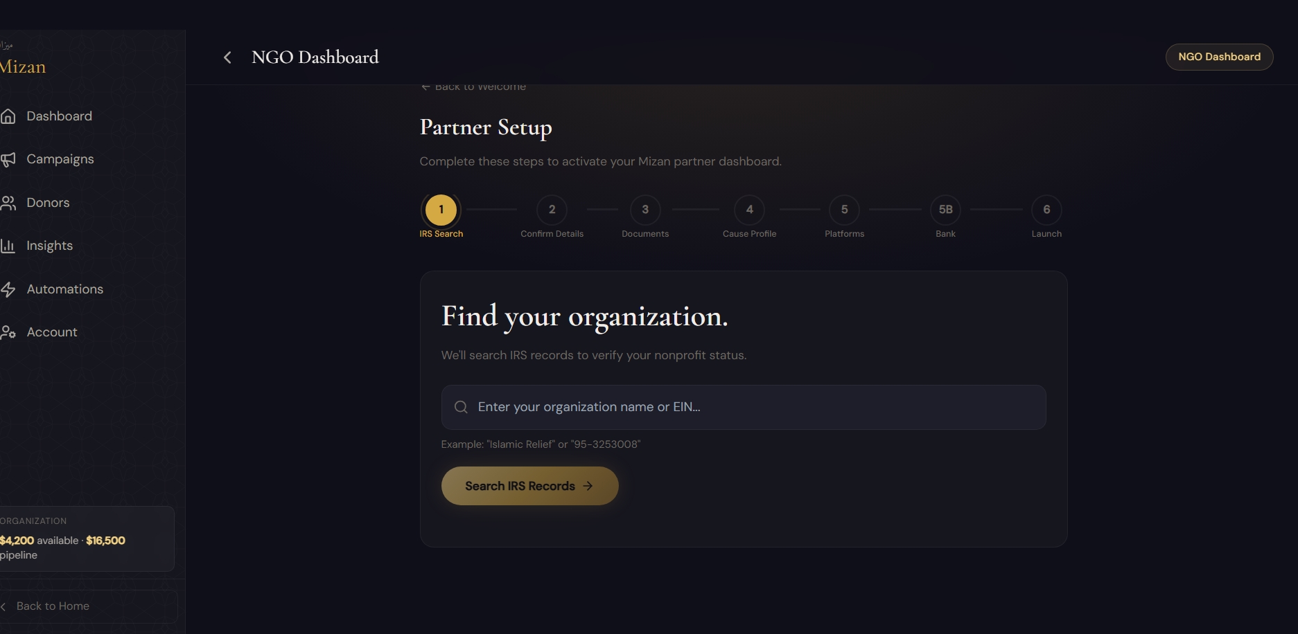 Mizan reframes the space as portfolio-grade infrastructure — valuable for individual donors, families building named jariyah vaults, masjids formalizing welfare and zakat operations, Muslim NGOs running live donor operations, and Islamic funds seeking compliant community-capital flows.