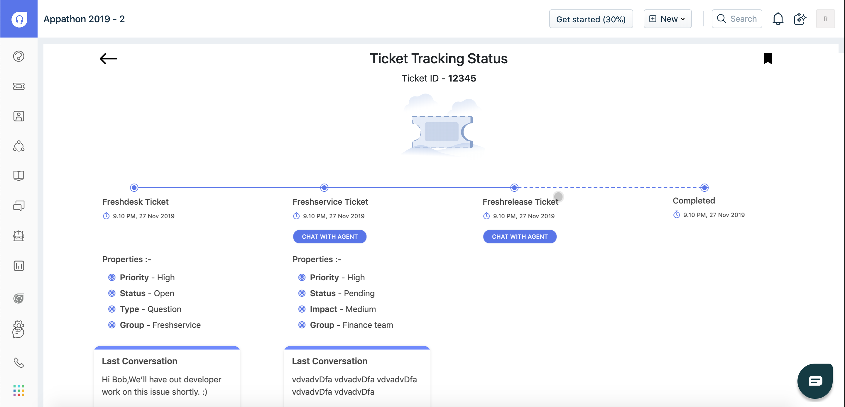Here you can visualize the entire journey or lifecycle of the ticket and proactively collaborate among the agents involved in the journey.