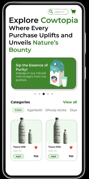 💵Cowtopia: It is an online marketplace offering various products like milk, agarbattis (incense sticks), and potentially more, aimed at supporting goshalas (cow shelters). Users can purchase these products, knowing that their contributions are helping to support and sustain these shelters.