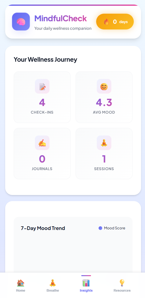 MindfulCheck is like a personal mental wellness companion. It helps you track your mood, journal your thoughts, practice calming exercises, and even access crisis support if needed. With streaks, progress visuals, and small achievements, it encourages self-care in a way that’s engaging, supportive, and non-judgmental.