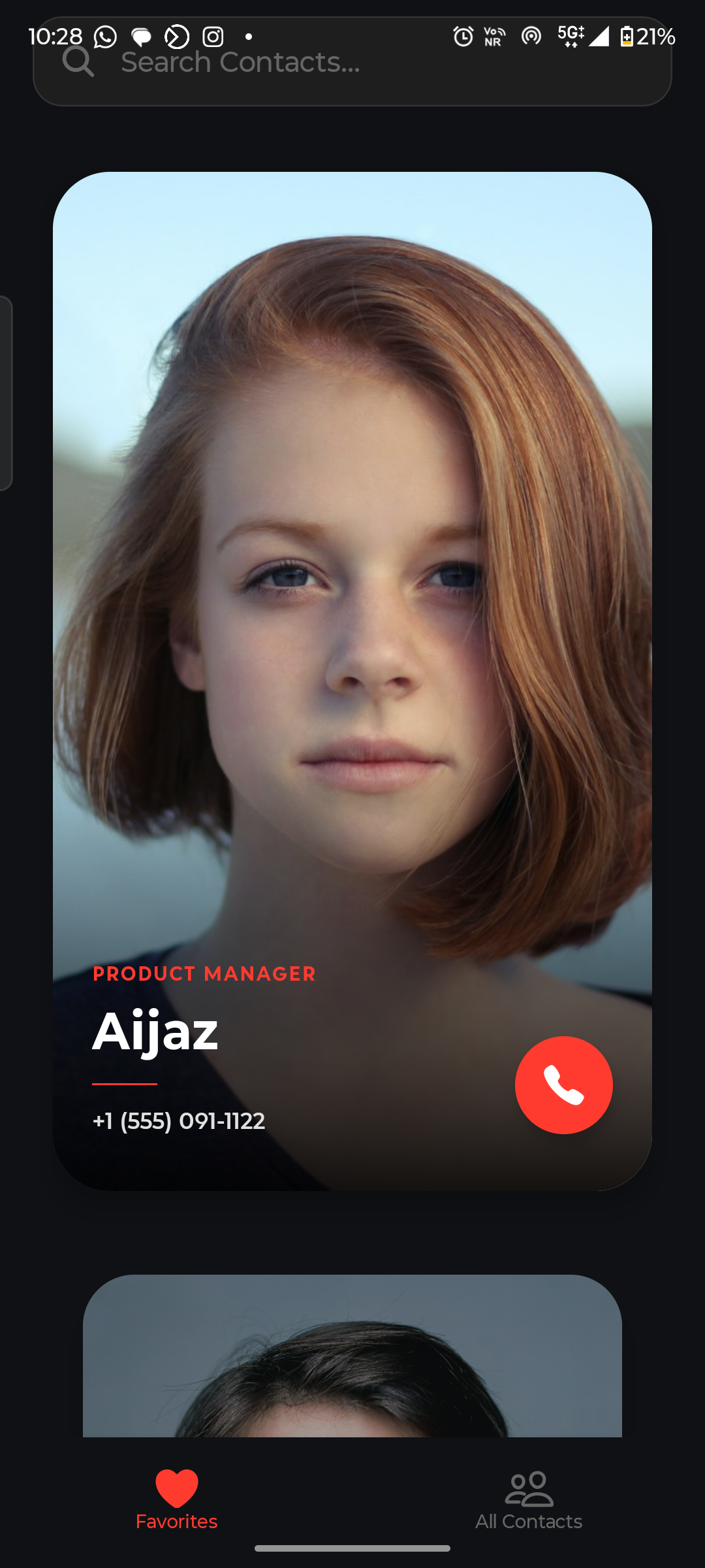 - "Shorts" Style Navigation: Contacts are displayed one at a time as full-screen cards. No squinting at small rows; the user focuses on one person at a time.