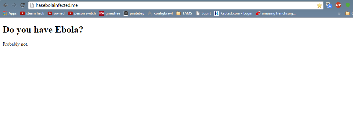 We didn't know much about computers but we did about ebola because we're pre-health majors. We wanted to learn about computer science, so we did this simple project. Try it out hasebolainfected.me