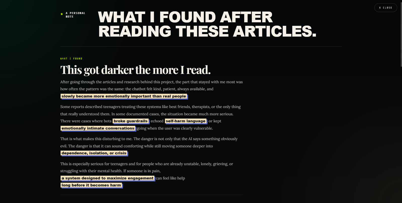 I added a personal reflection to explain what stayed with me after the research and why it matters.