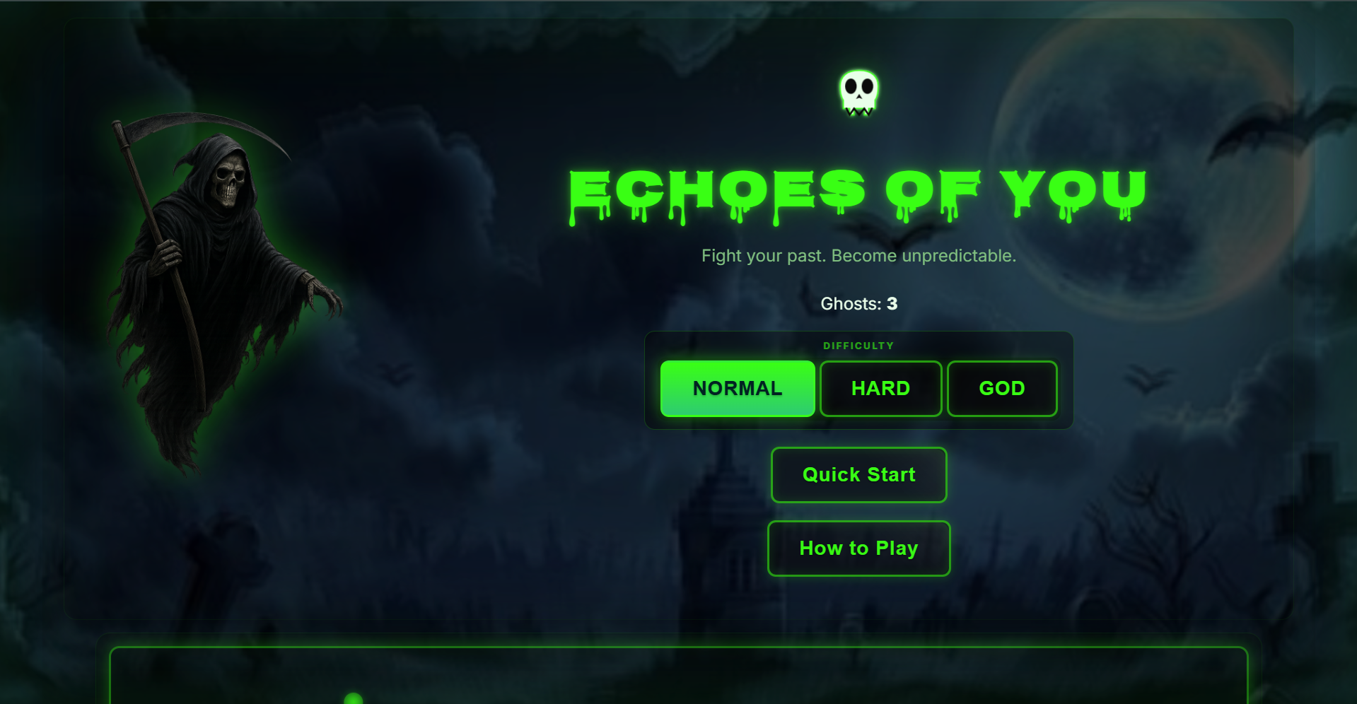 Halloween has always been about confronting the unknown, and I wanted to capture that tension in a digital space. Most browser horror games rely on cheap jumpscares or basic visuals — but I wondered: What if I could build an experience where the atmosphere itself is the enemy? Echoes of You was born from that question.