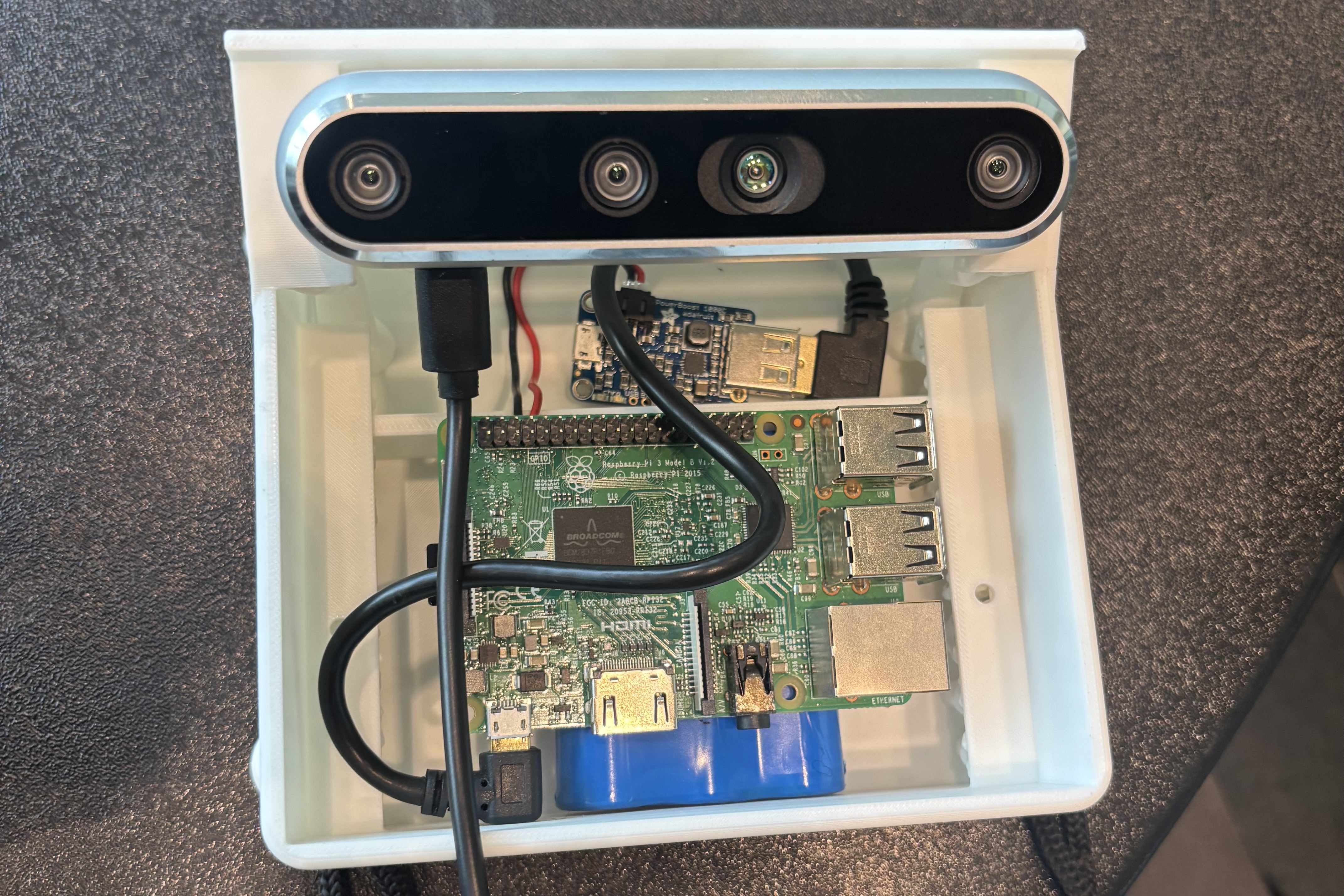 As a solo builder I had to design every single aspect from scratch; mechanical, software, and embedded systems simultaneously with no one to hand anything off to. The Raspberry Pi provided was substantially underpowered to run the RealSense camera, so I had to pivot mid-build and redesign the architecture to run everything on a laptop in my backpack. The 3D printer broke on the last print. And I spent my last $5 on API tokens to get it over the line.