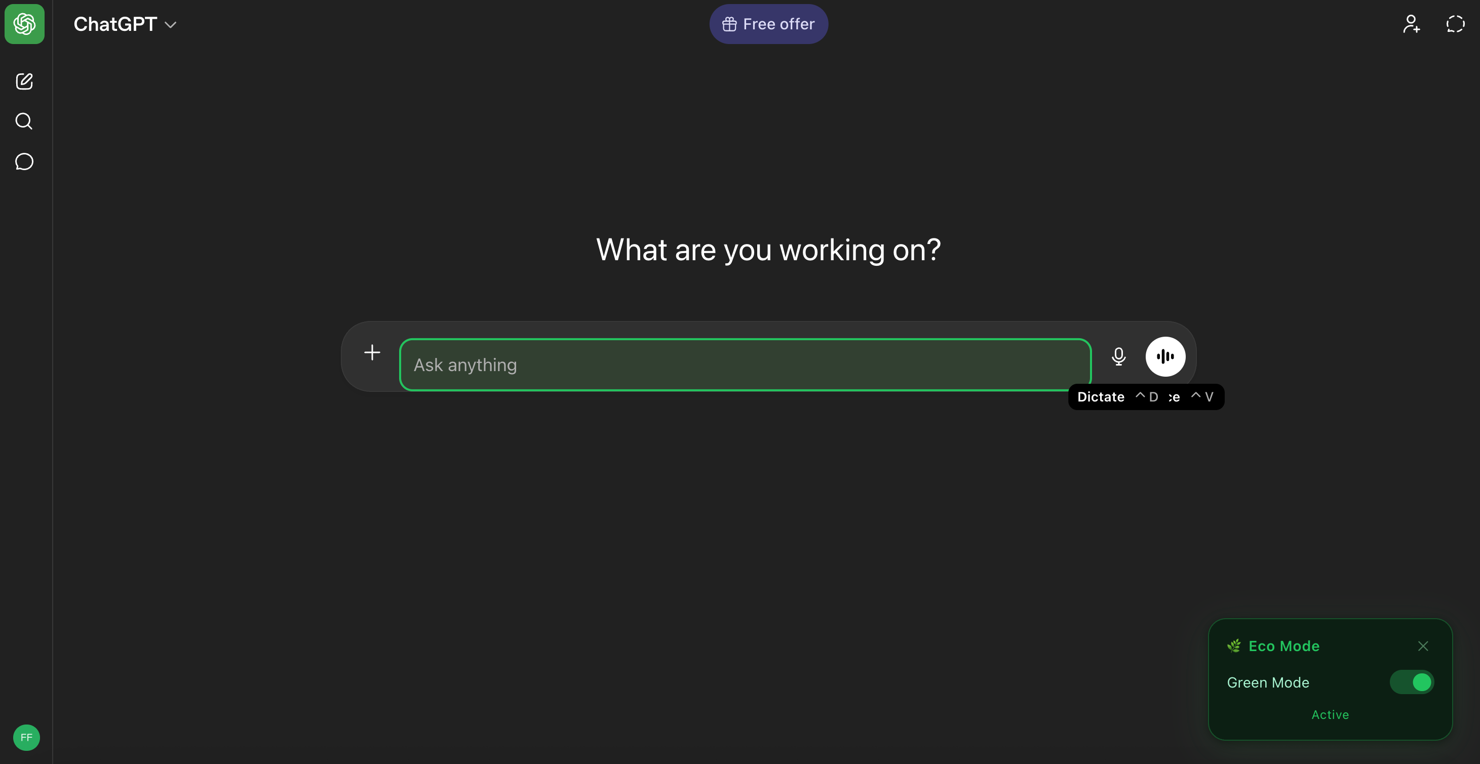 Enabling eco mode will run on chatGPT and the system will intercept your prompts and send a "reduced prompt" that will save a small percentage of water.