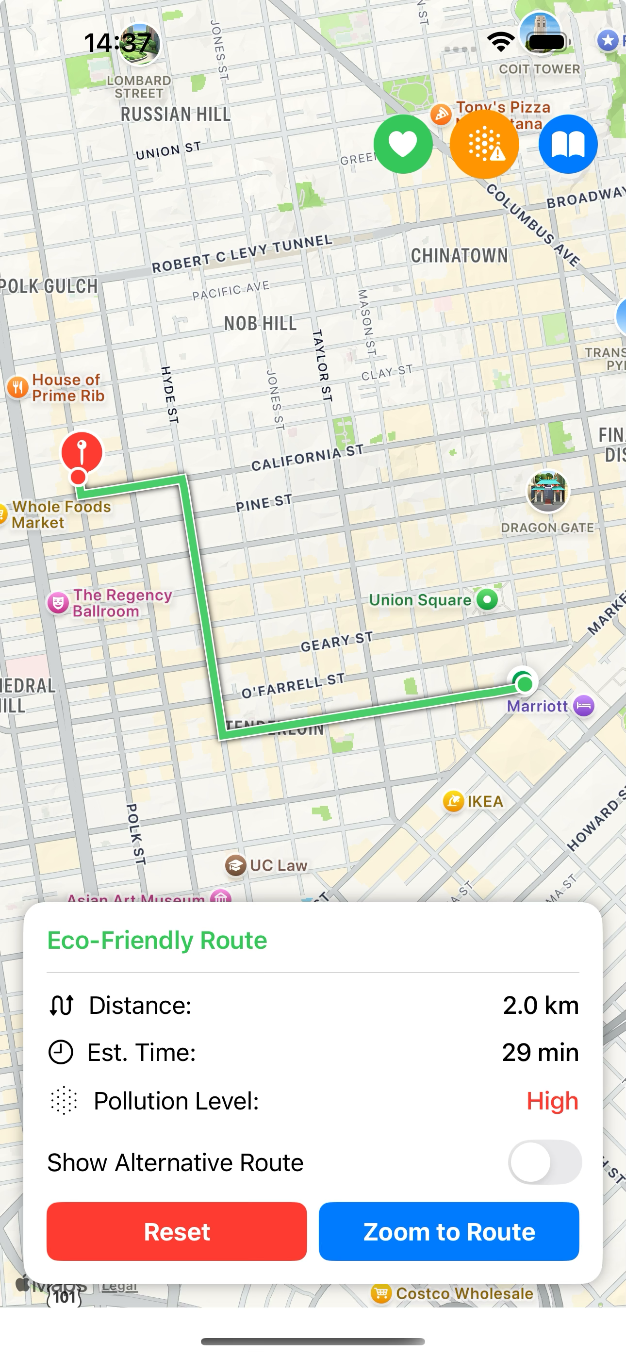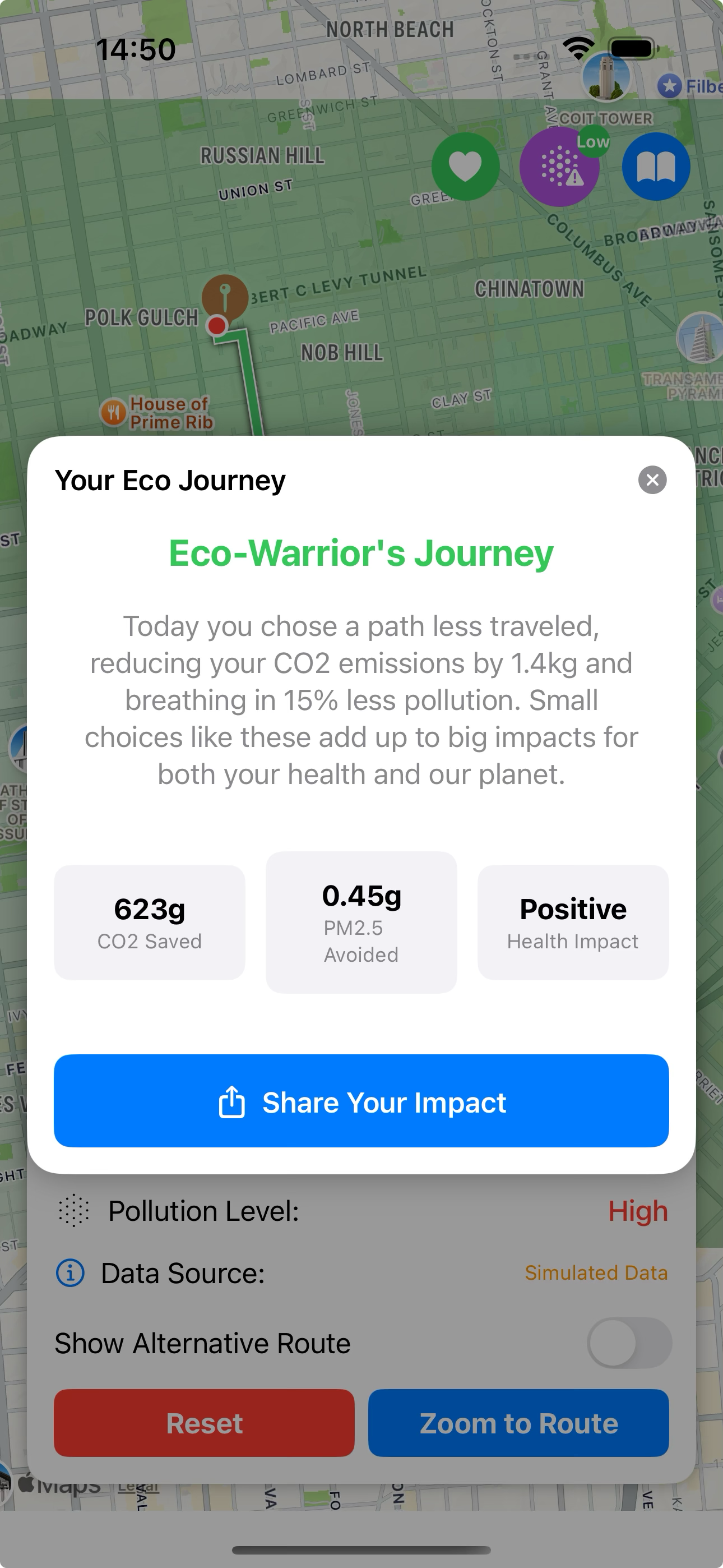 EcoCoach was born from a simple yet powerful realization during my daily commute through the bustling city streets: not all routes are created equal when it comes to the air we breathe. 💡 Inspiration While planning my bike route to work one morning, I noticed that Google Maps offered three paths-all with similar travel times, but vastly different surroundings. One ran alongside a congested highway, another through a park with dense tree cover, and the third through residential side streets. I wondered: which route would expose me to the least pollution? This question sparked the idea for EcoCoach. 🛠️ How We Built It EcoCoach is built as an iOS app using Swift and SwiftUI, with a focus on creating a seamless user experience. The development journey involved several key components: Apply to Info.plist storytelling The app leverages AWS Bedrock's generative AI capabilities to create personalized route stories, transforming dry metrics about pollution reduction into engaging narratives that help users understand their environmental impact in human terms. 📚 What We Learned Building EcoCoach taught us invaluable lessons about: Integrating diverse data sources into a cohesive user experience Visualizing complex environmental data in an intuitive way Balancing accuracy with performance in mobile applications Leveraging AI to create meaningful, personalized content The unexpected complexity of geospatial calculations 🧩 Challenges We Faced The journey wasn't without its obstacles: Data visualization complexity: Creating intuitive, color-coded pollution overlays that don't obscure the underlying map or route lines required countless iterations. API integration hurdles: Working with OpenAQ's API required careful optimization to minimize network requests while still providing accurate pollution data. Performance optimization: Rendering complex map overlays while maintaining smooth performance on mobile devices demanded creative solutions. Balancing features: We had to carefully decide which AI features to implement with AWS Bedrock to enhance the user experience without overwhelming the app with unnecessary complexity. In the end, EcoCoach emerged as more than just a navigation app-it's a tool that empowers users to make healthier choices in their daily travels, one breath at a time.