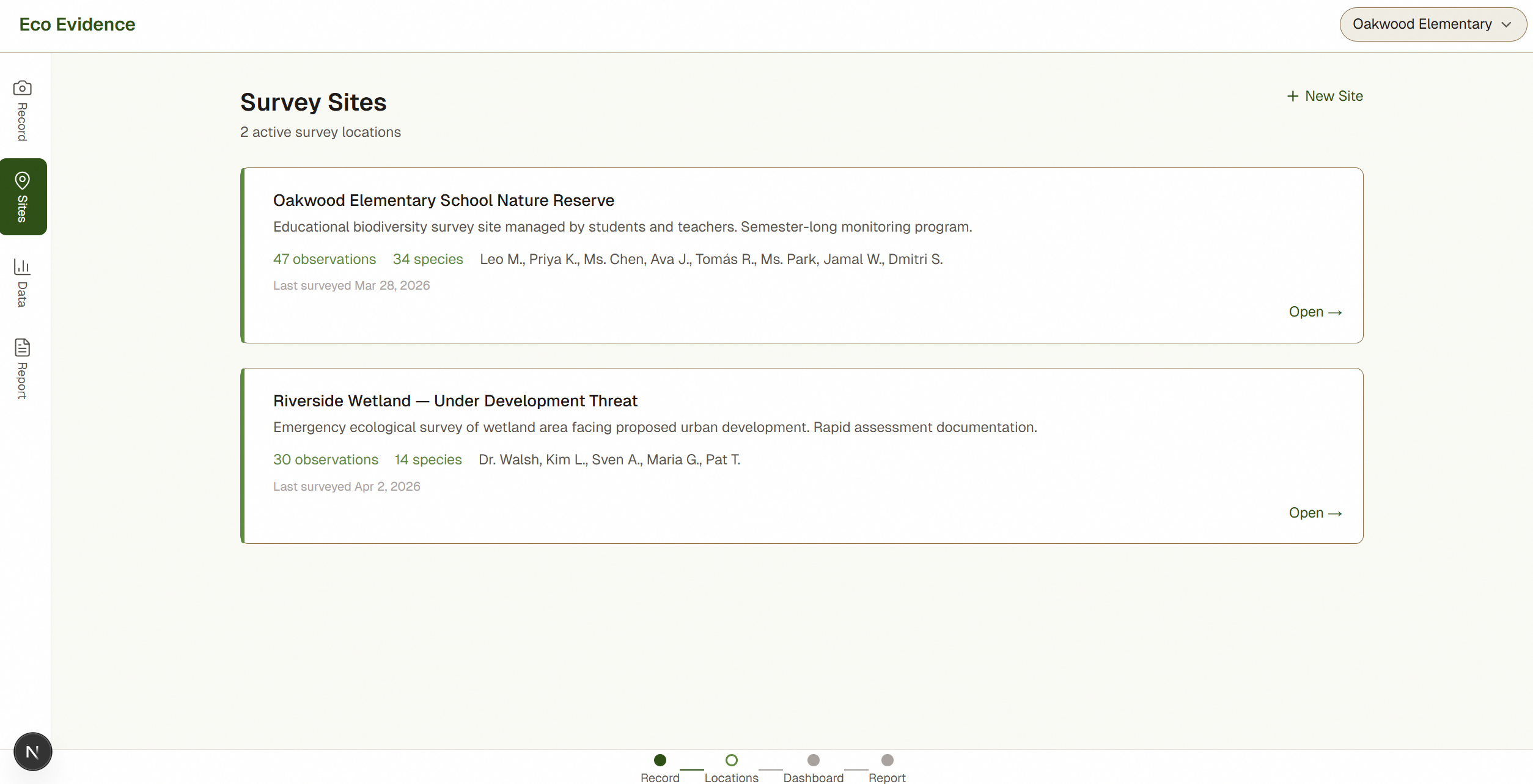 - The Shannon Diversity Index is calculated automatically — users get real ecological science without knowing the math