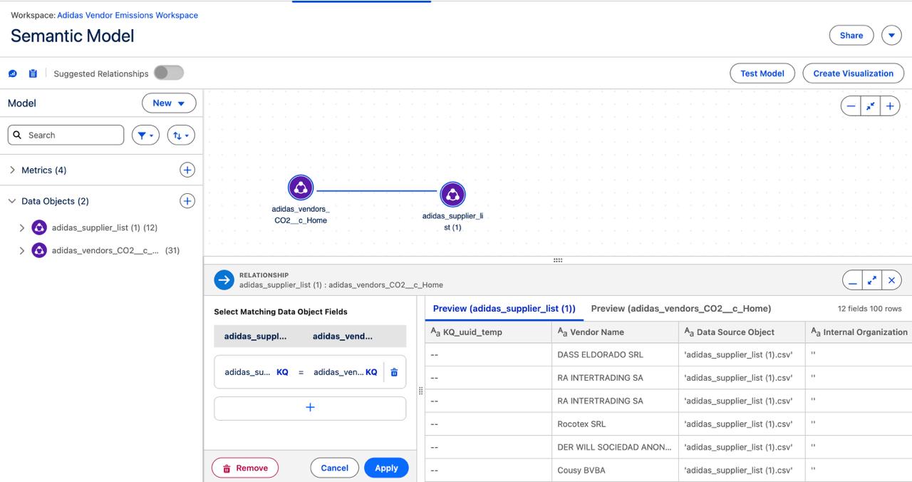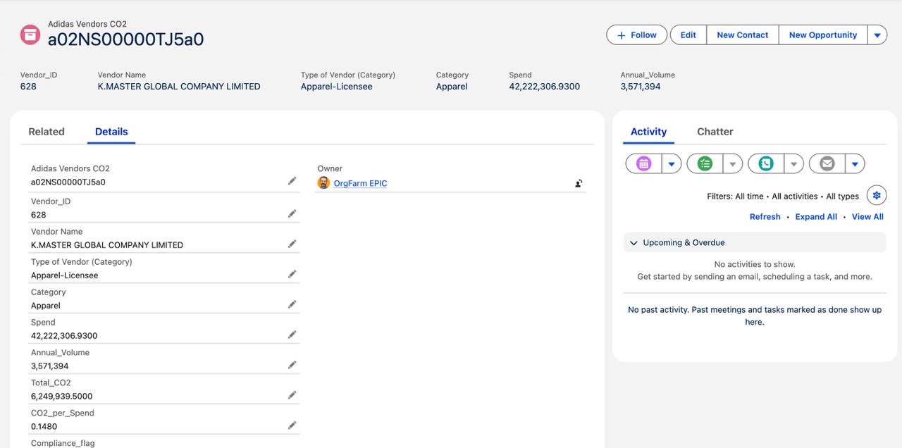 - Created a custom object: Adidas Vendors CO2