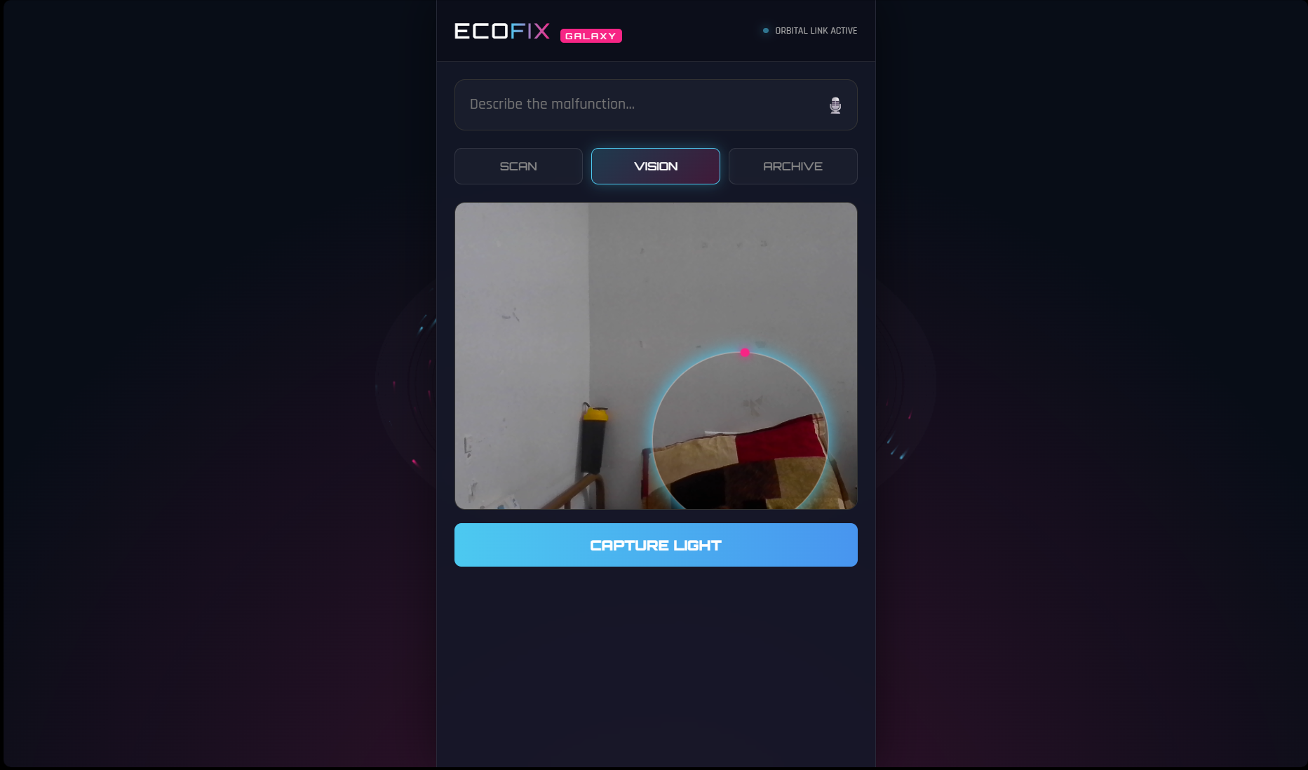 We built the backend using Python and Flask, acting as a lightweight wrapper around the Google GenAI SDK. The Brain: We utilized Gemini 3 Flash Preview for its speed and multimodal capabilities. The model is prompted to output structured JSON data, allowing us to parse repair steps, safety warnings, and impact metrics directly into our UI. The Frontend: The UI features a custom "Galaxy" theme built with vanilla CSS3 and HTML5 Canvas, featuring a particle system that simulates a spiral galaxy. Real-time Interaction: We used the Web Speech API for voice-to-text and HTML5 Video for the live camera feed, capturing snapshots that are sent to Gemini for instant analysis.