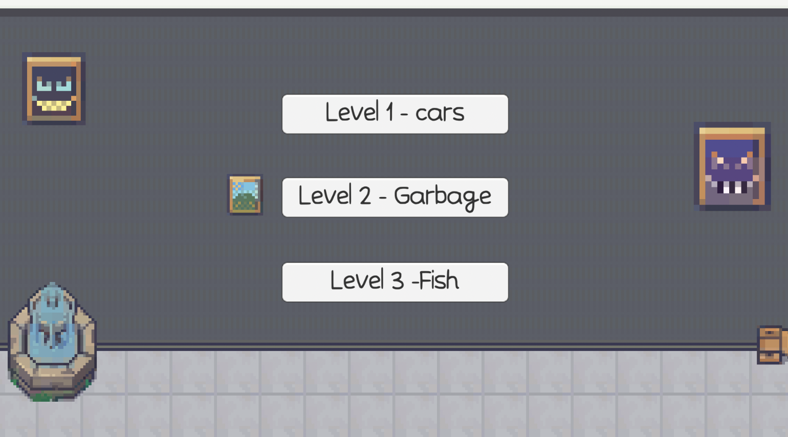 Ecology Choice is a three-minigame educational game where every level targets a different real-world environmental problem. In the first minigame, players have to choose transport and see how it can influence the whole city. In the second, garbage falls from above, and players must sort it into a paper, food waste, or glass bin. In the third, they fish in a polluted lake and must remove plastic from the fish they catch.