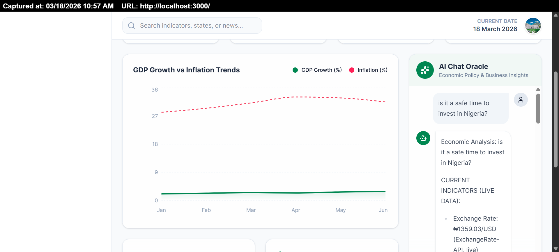 For governments, the Oracle provides AI-powered policy recommendations with 87% confidence scores. It analyzes real-time economic indicators like exchange rates, weather, and port activity. Everything cites actual CBN and IMF reports.