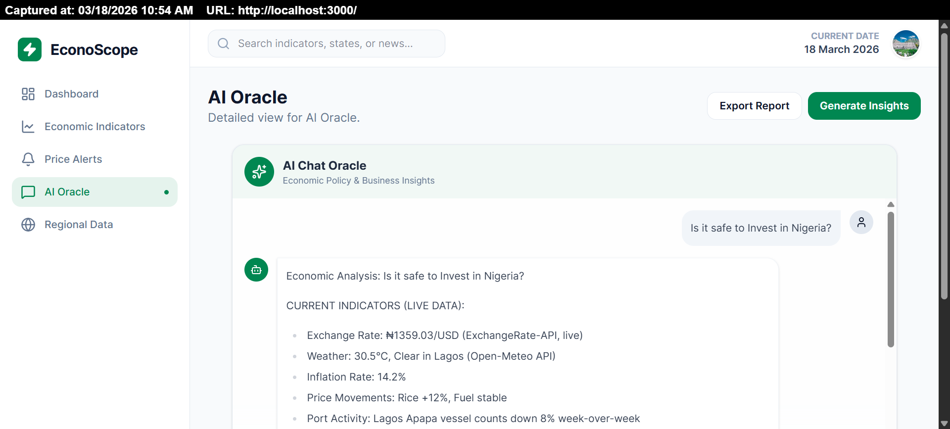 DEPLOYED TO PRODUCTION: EconoScope is a real-time economic intelligence platform for Nigeria.