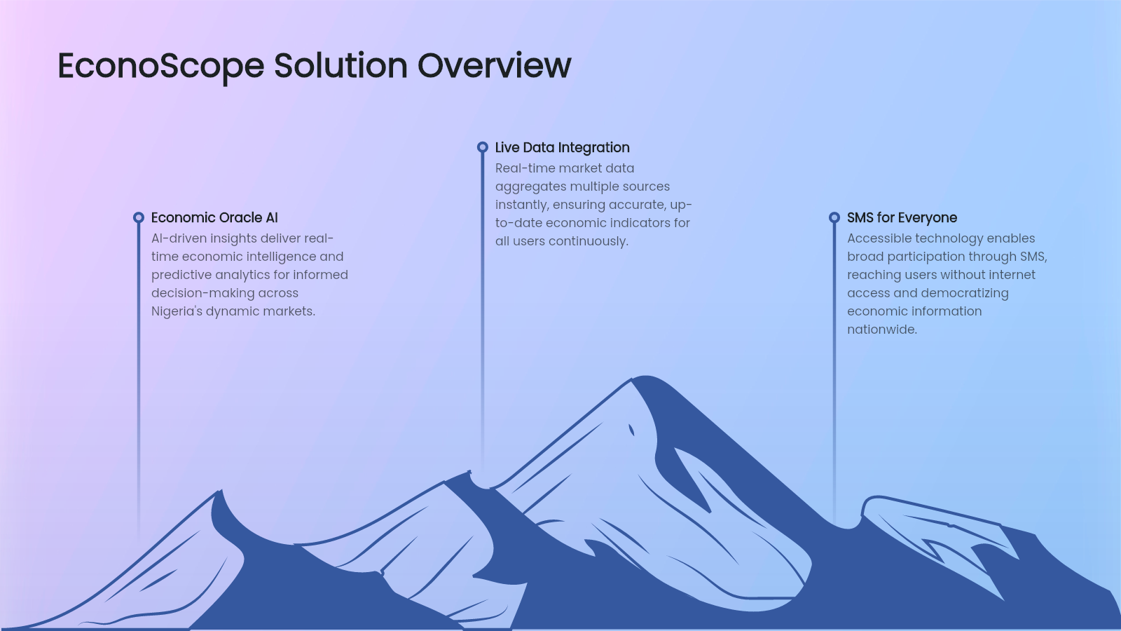 Long-term vision: Make EconoScope the "economic nervous system" for developing nations. Real-time intelligence for 2 billion people in invisible economies worldwide.