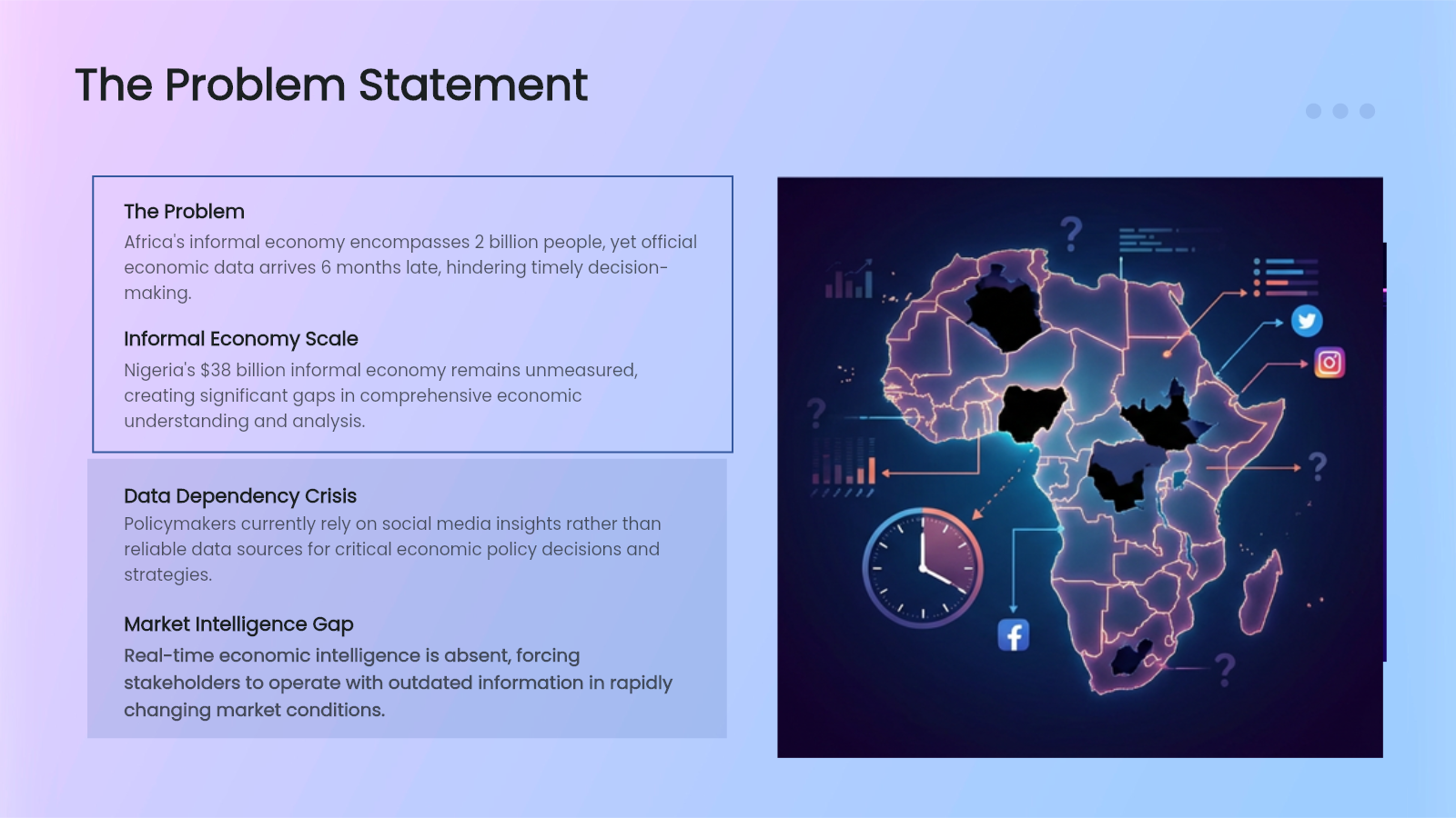We're solving a real problem for 2 billion people. Nigeria's informal economy is 61.7 trillion naira ($38B USD) and completely unmeasured. EconoScope makes it visible.