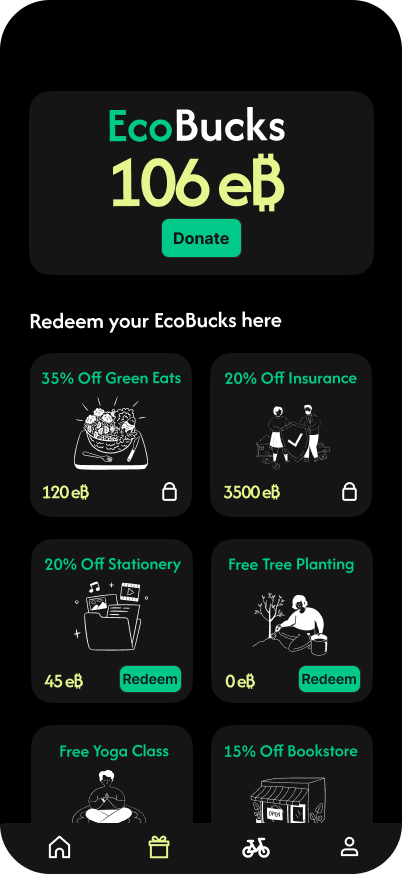 - Users can redeem EcoBucks for student-friendly rewards, such as: