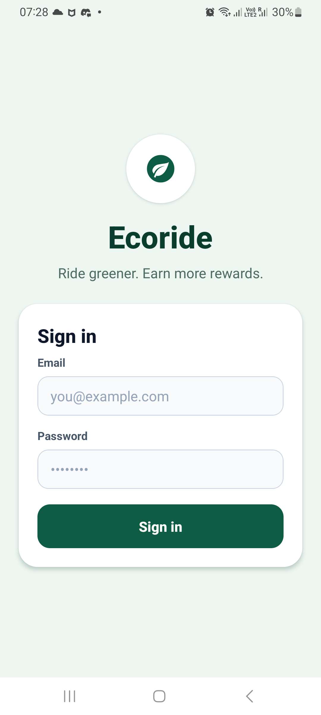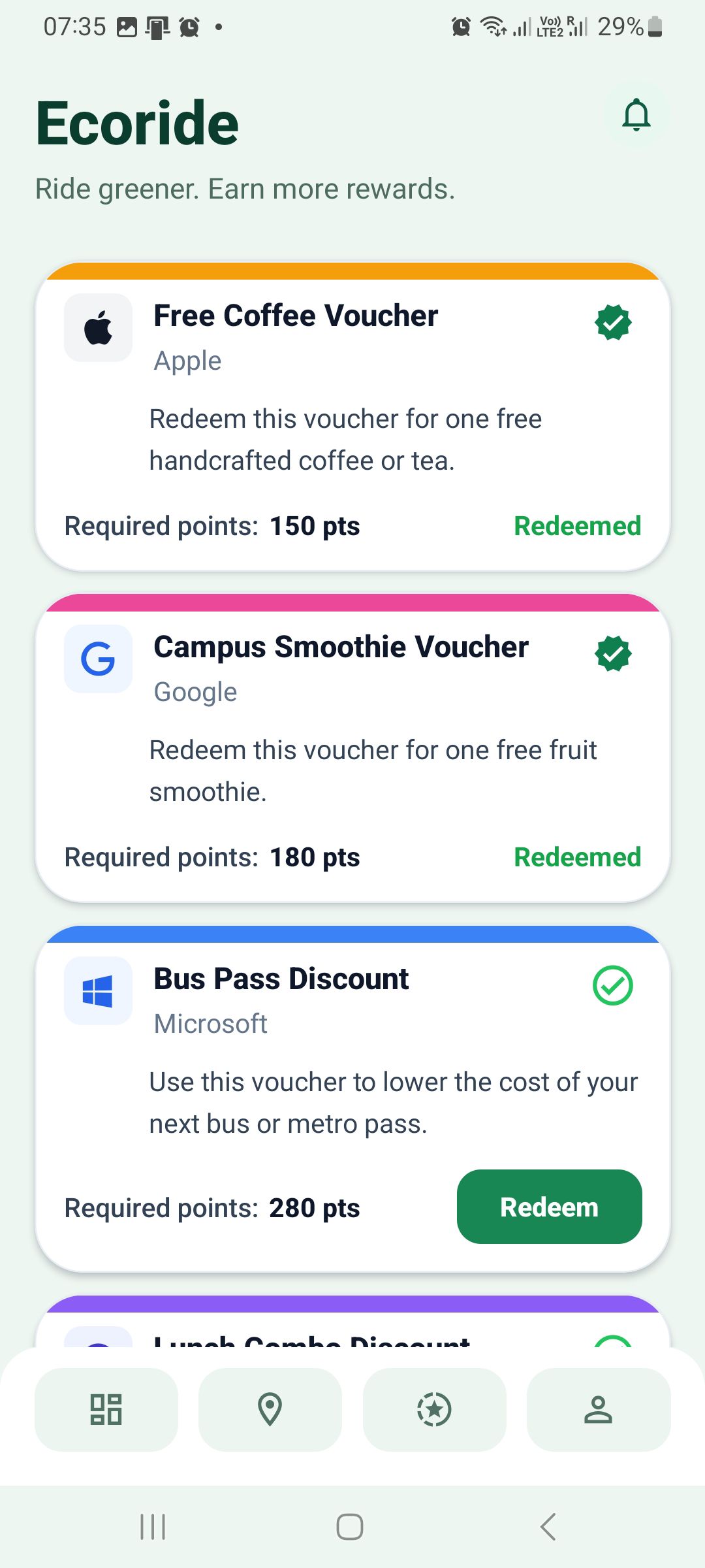 We were also inspired by the idea that sustainability apps should feel motivating, not just informational. That is why EcoRide combines live map-based logistics with points, milestones, and rewards to make eco-friendly delivery decisions feel visible and worthwhile.