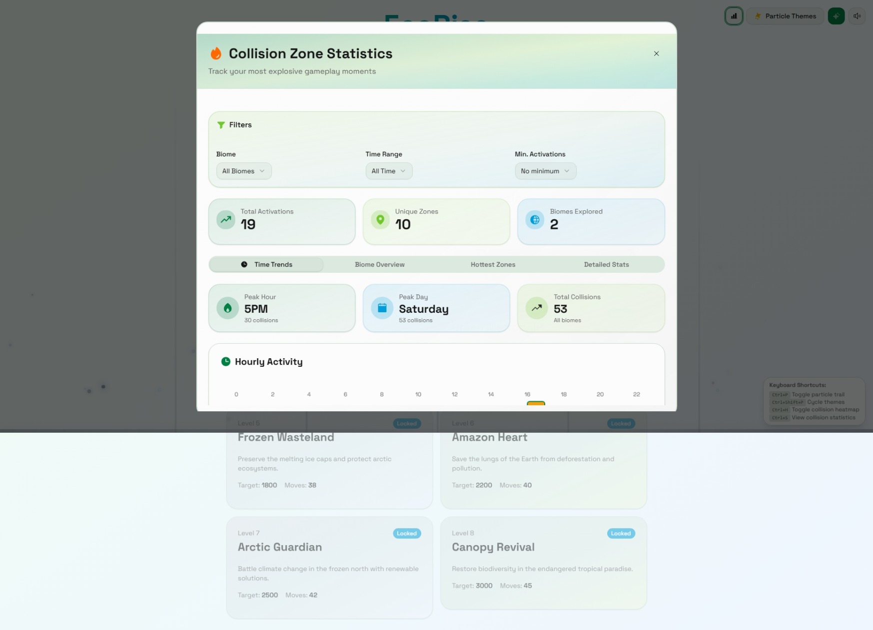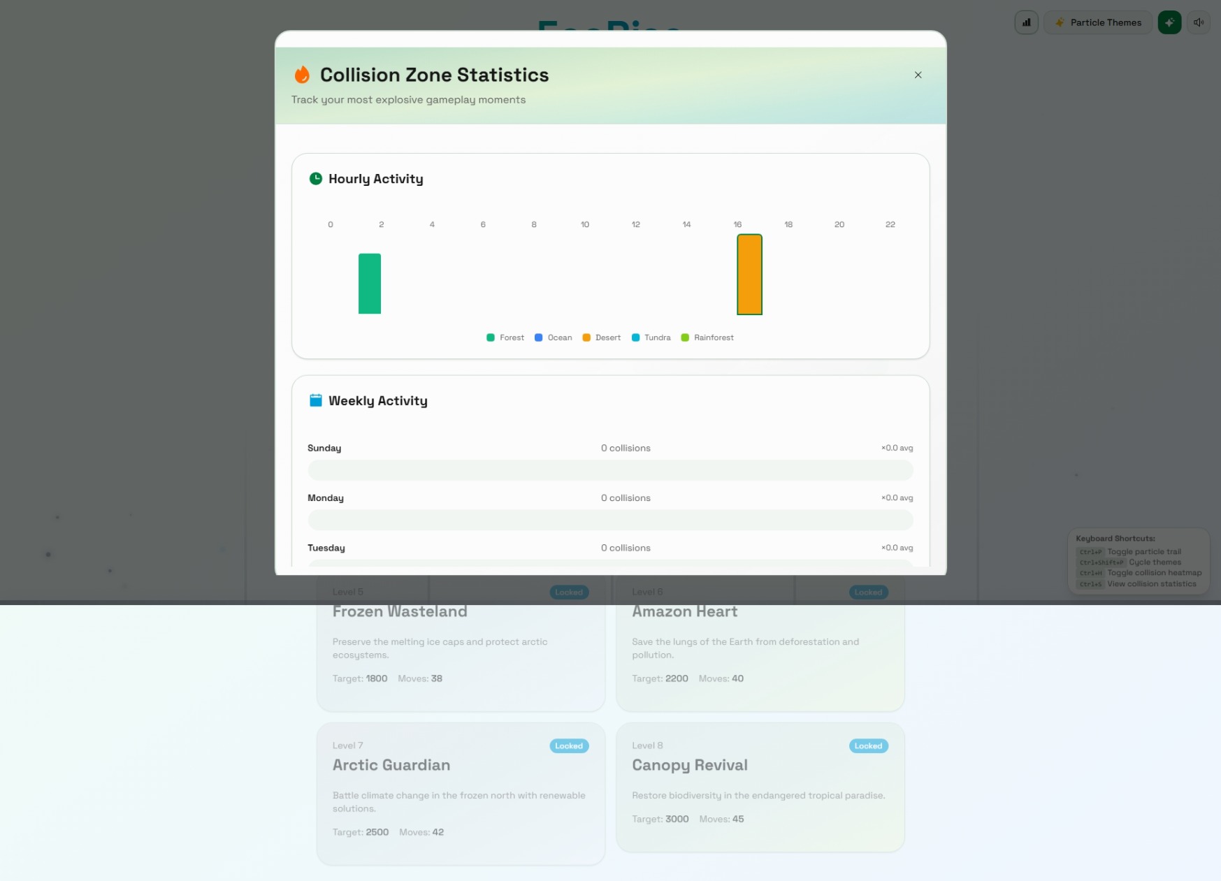 โจ Particle Collision System - Mouse trails interact with matches, creating score multipliers (2x, 3x, 5x+) when collisions occur. View heatmaps showing your most active zones!