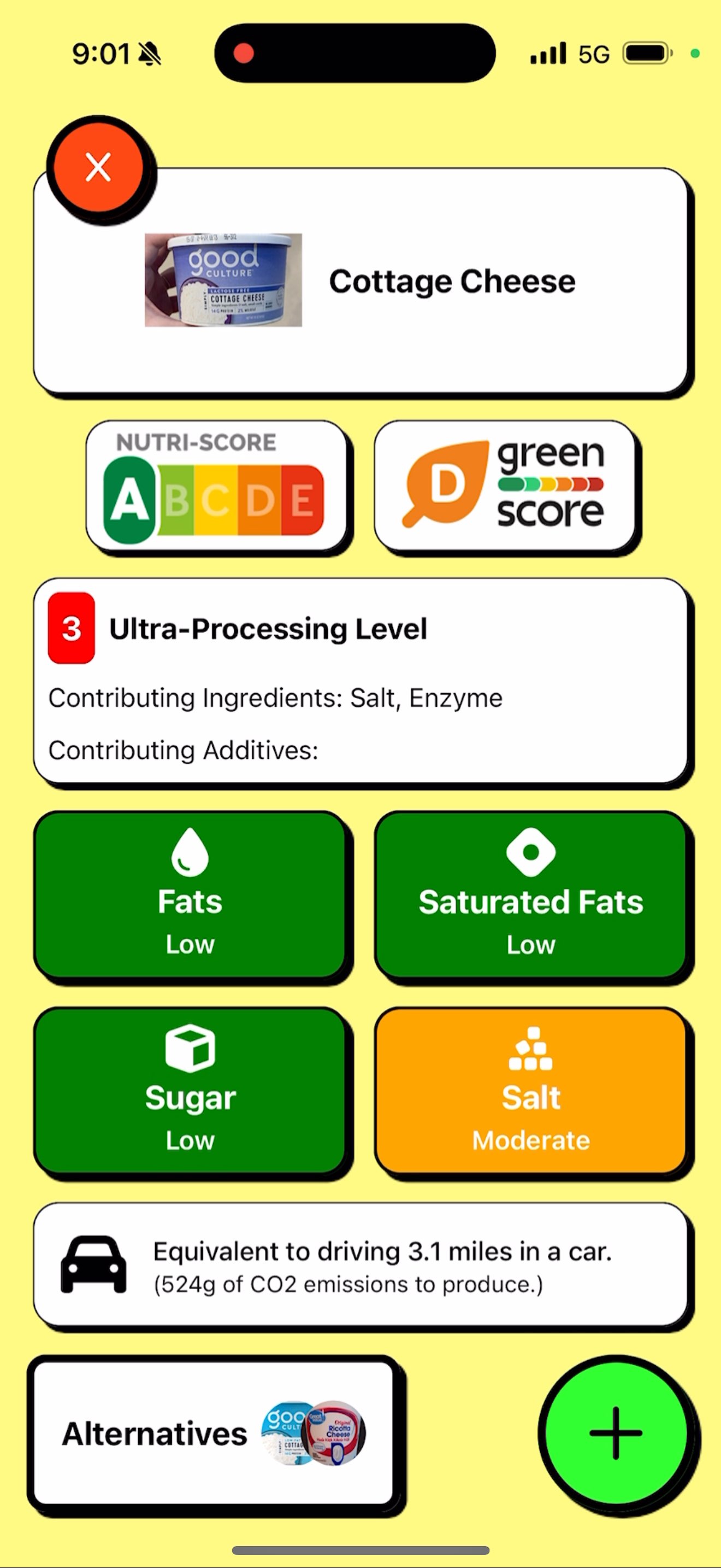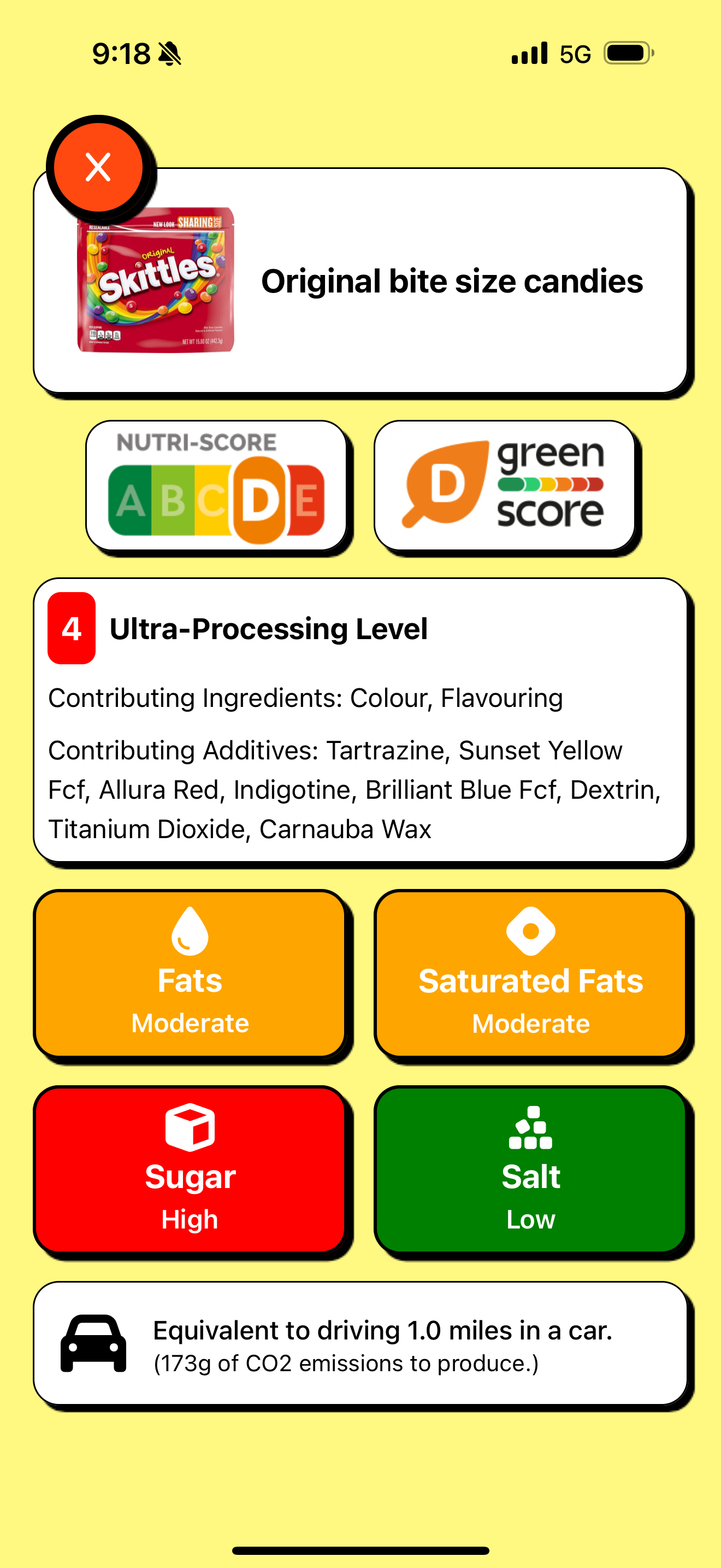 Item Nutrition and Sustainability Score Page for scanned item