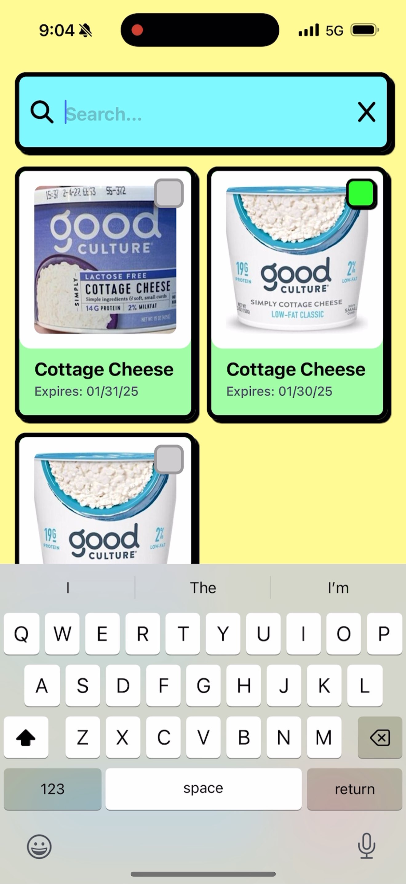 Search feature for items in fridge for easier selection + removal