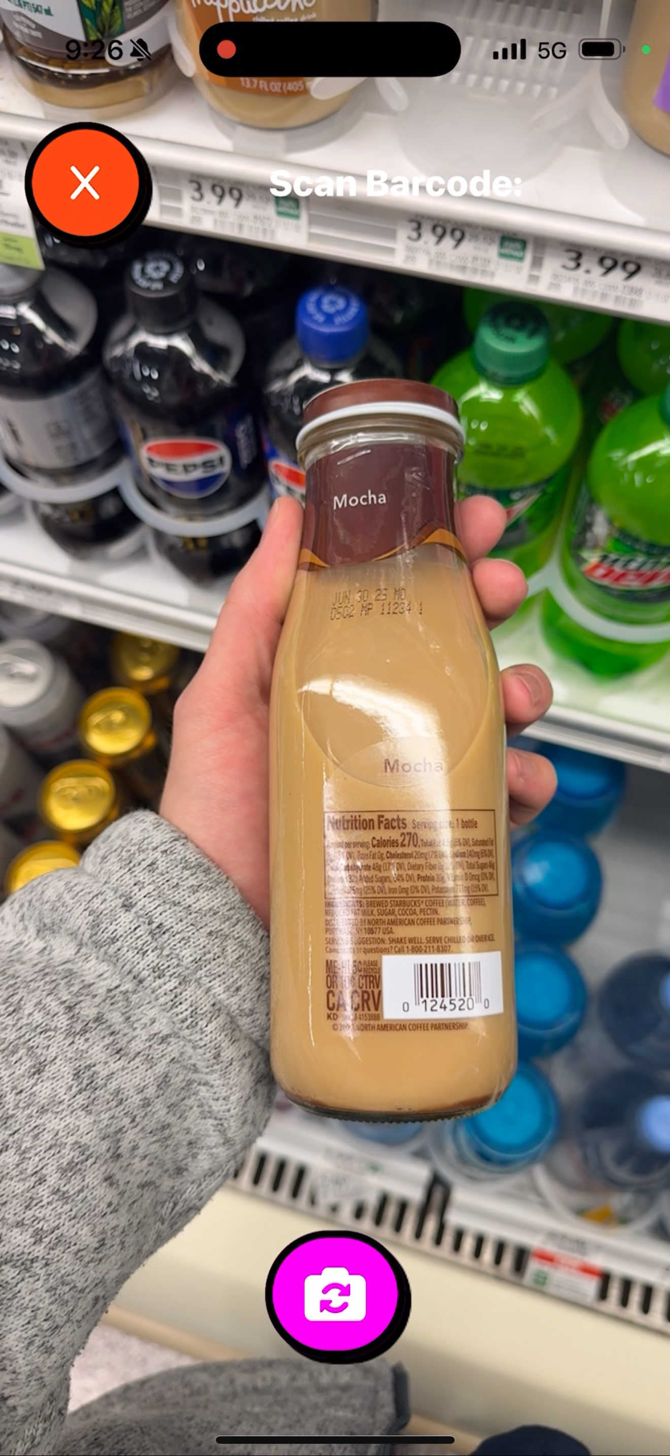 Scan items using your camera to put in a barcode