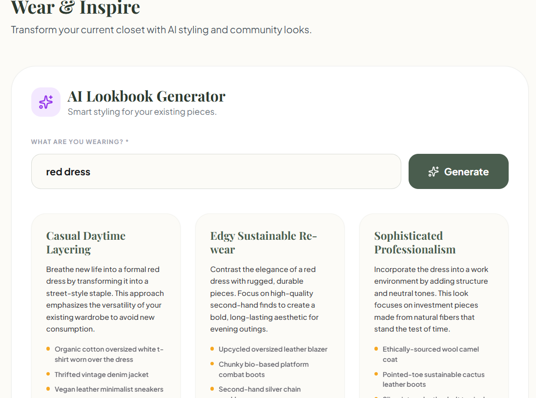 Through research, we discovered fashion is one of the world's largest polluters, with 92 million tons of textile waste landfilled annually. Simultaneously, the average person wears only 20–30% of their wardrobe. We saw a painful gap between wanting to live sustainably and feeling powerless to change our own habits—especially on a budget.