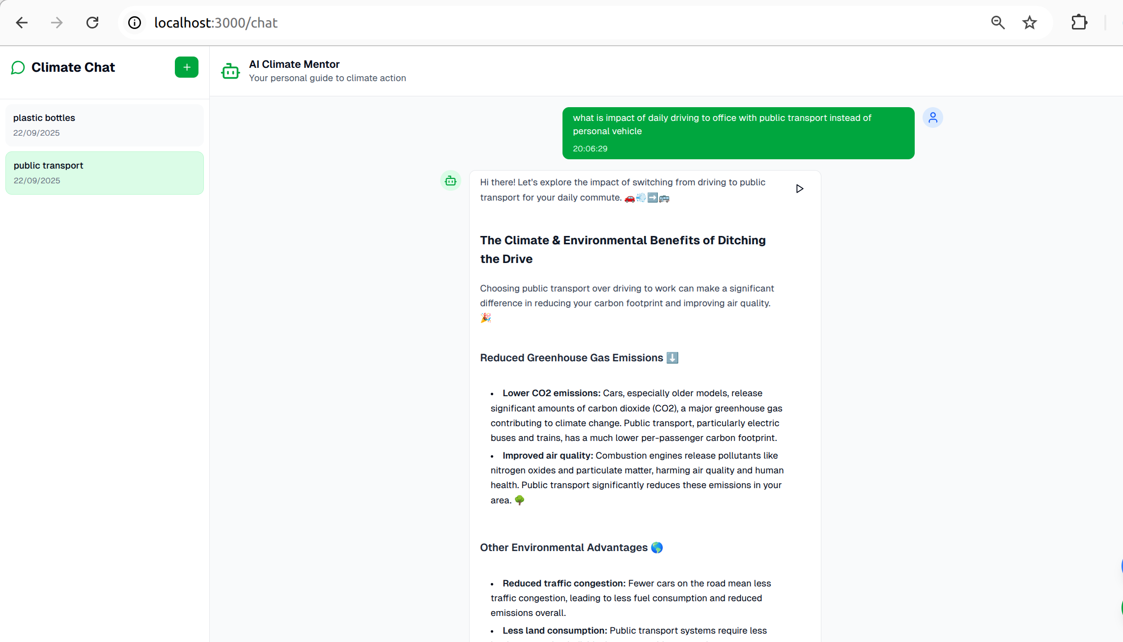 - AI Climate Mentor: Conversational guidance companion for climate questions and actionable advice