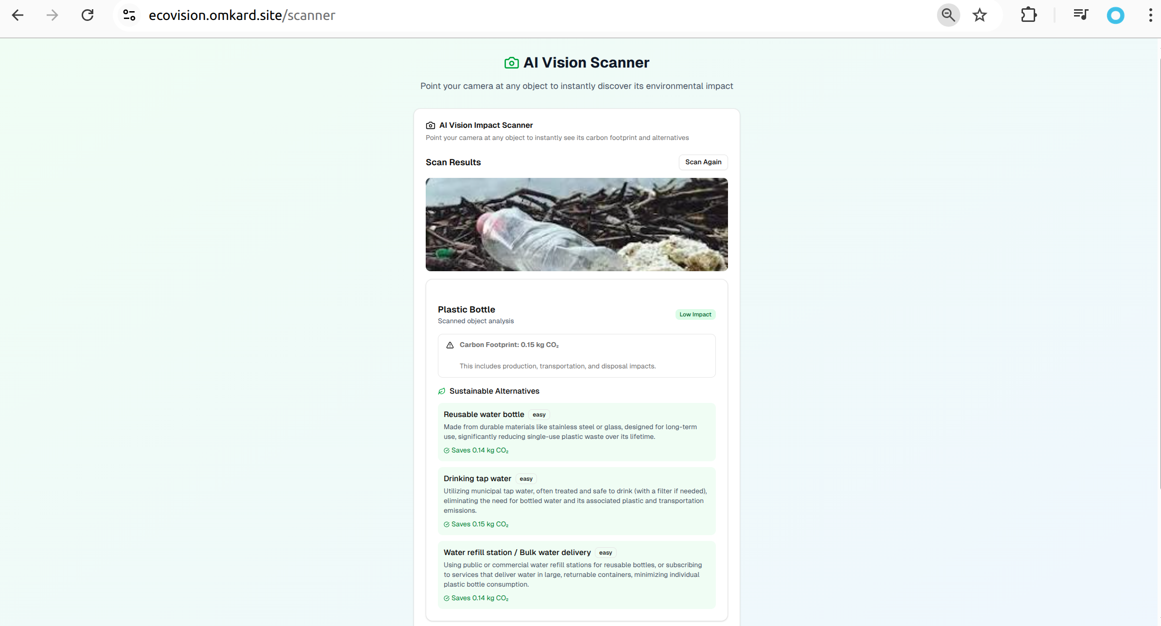 - AI Vision Scanner: Instant carbon footprint analysis of any object