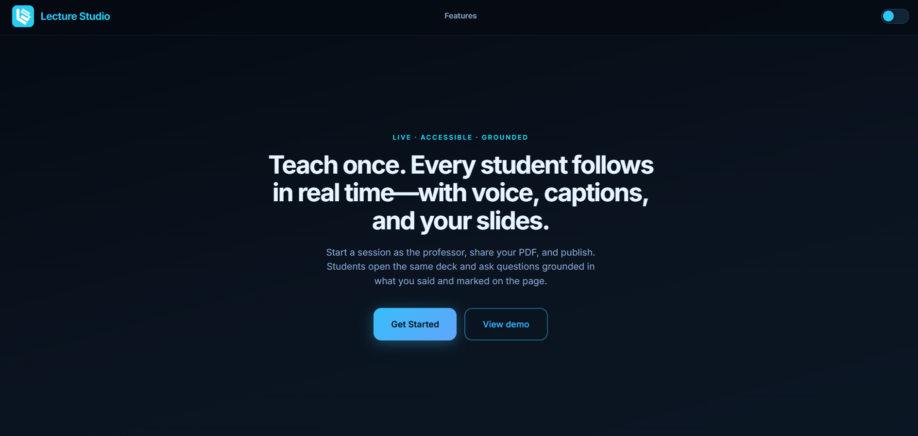 We built a web app with two sides, one for professors and one for students. The professor side uses ElevenLabs to transcribe audio and clone their voice. The student side uses Google's Gemini Live AI to understand questions in real time and streams the answers through ElevenLabs so it sounds like the professor speaking. We used MediaPipe to detect hand signs from the webcam for ASL input.