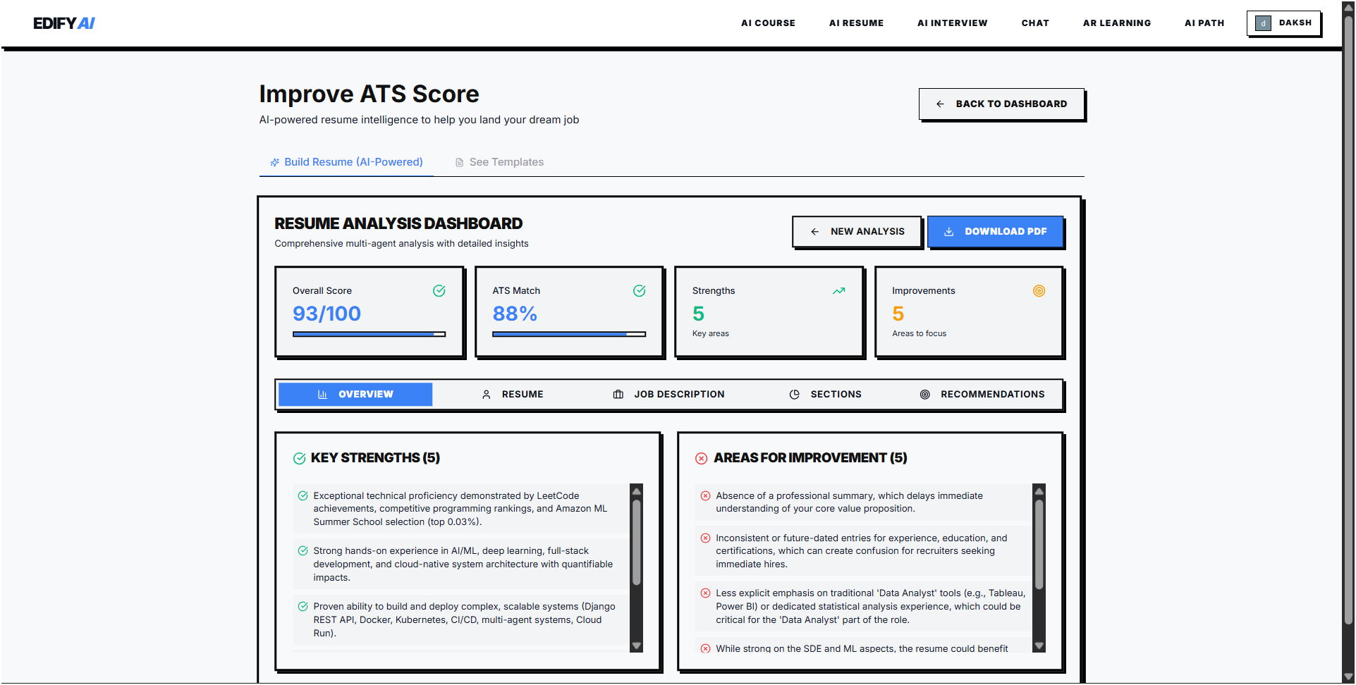 Edify-AI is a multi-agent AI career mentor that guides students from confusion to job-readiness through five core capabilities: