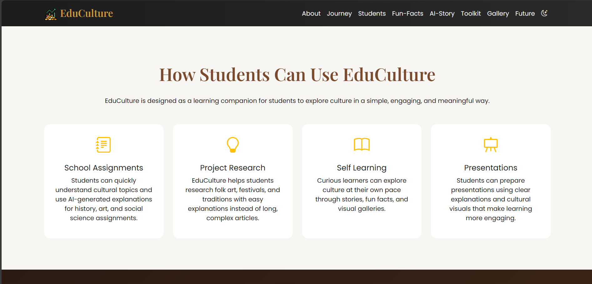 EduCulture is built for students, not just about culture.