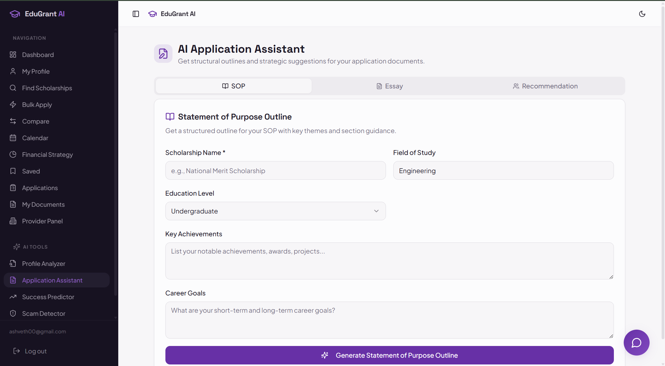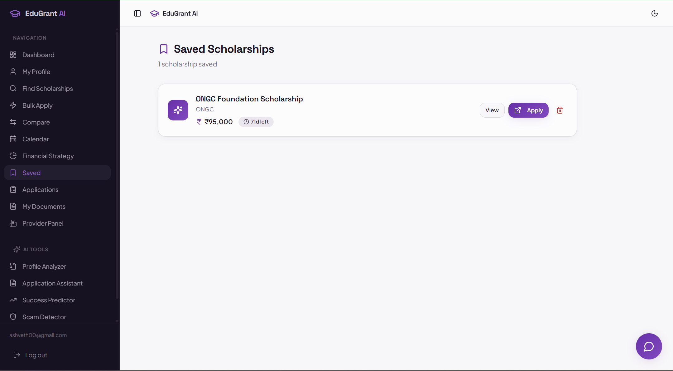 Our long-term goal is to make EduGrant AI a one-stop platform for students — not just for finding opportunities, but for actually achieving them.