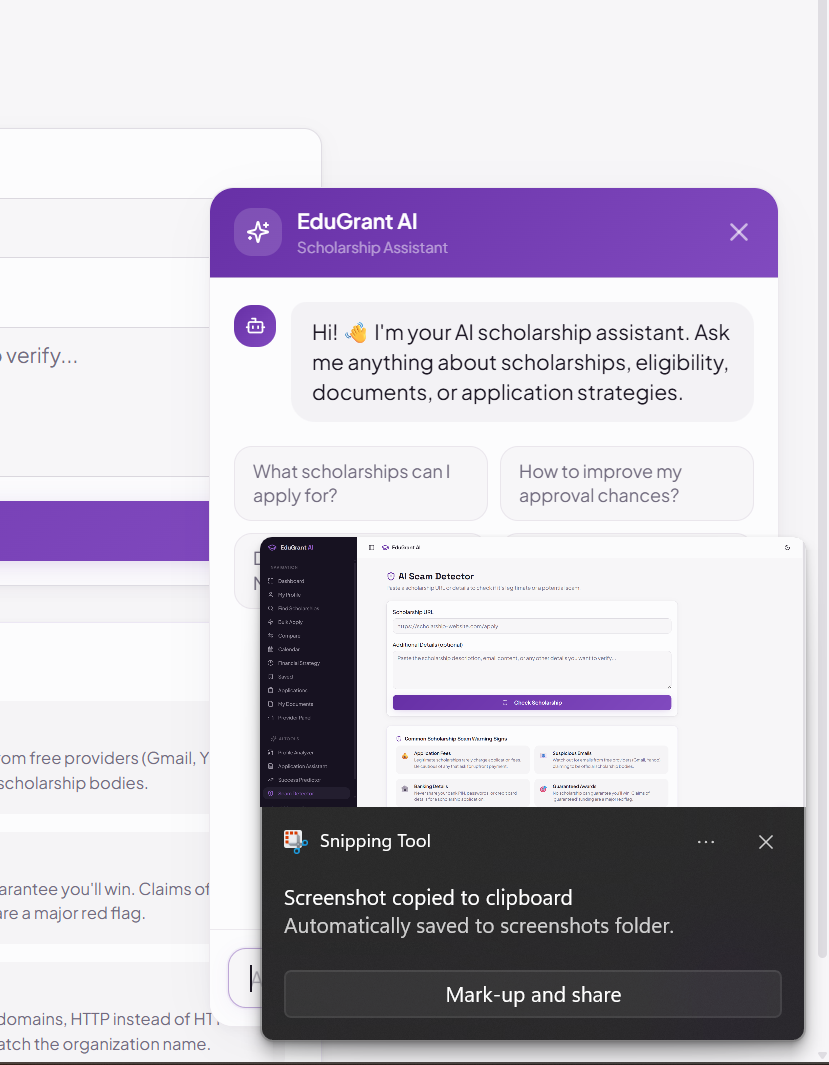 The biggest win for us is that EduGrant AI can actually help students who might not have access to proper guidance. Even in its current stage, it already saves time and reduces confusion.