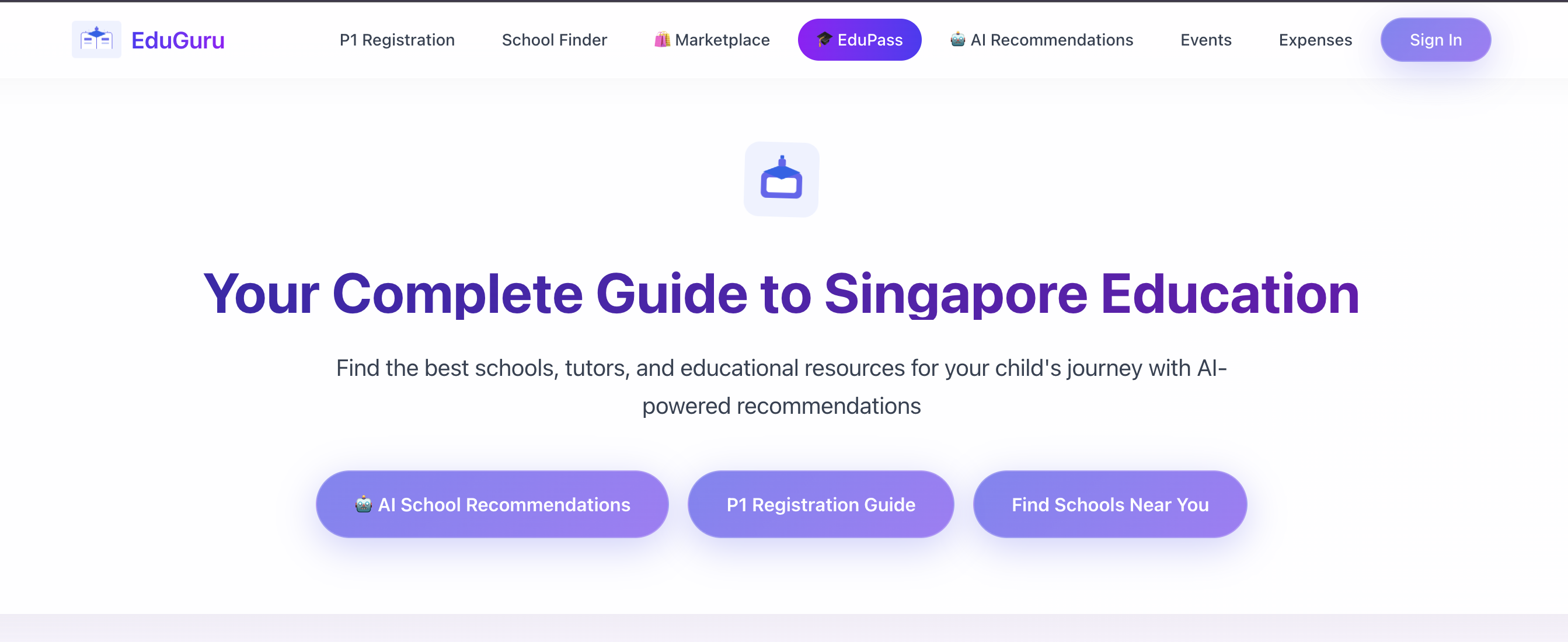 EduGuru is an innovative, AI-driven educational platform designed to revolutionize how families in Singapore and Southeast Asia make educational decisions. By integrating personalized recommendations, a flexible subscription model (EduPass), and a trusted marketplace for schools, tutors, and enrichment programs, EduGuru simplifies the complex and competitive educational landscape. Our mission is to empower parents, students, and lifelong learners with culturally relevant, data-backed insights to confidently navigate their educational journeys.