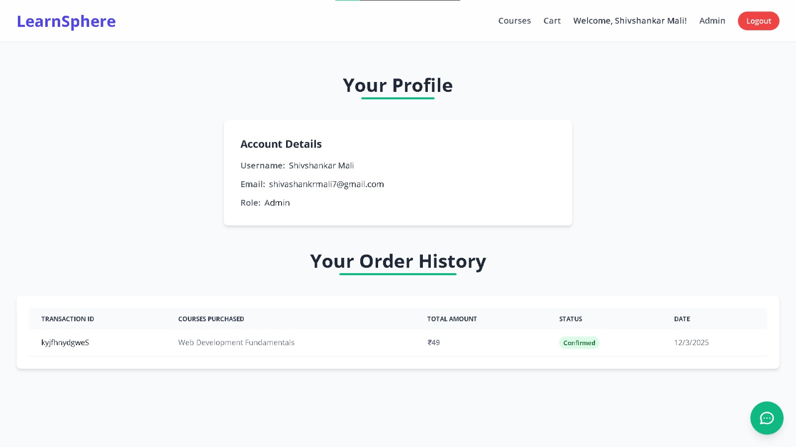 In the future, LearnSphere could be expanded with real course content, secure payment integration, and user progress tracking. The AI advisor could also be improved with personalization based on user behavior and learning history.